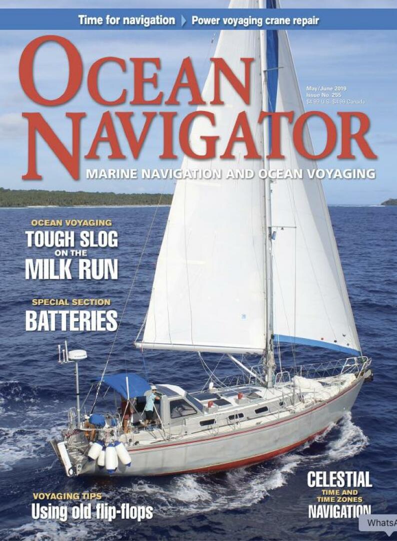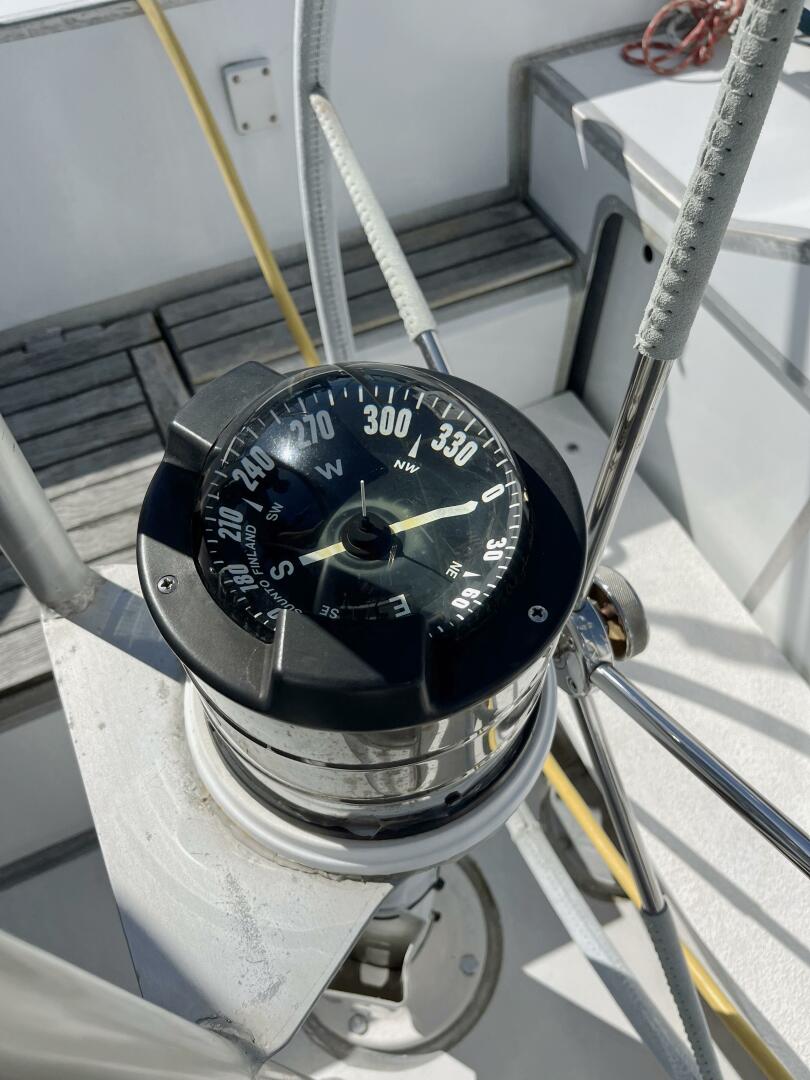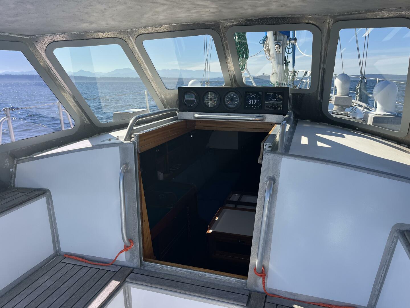 Edson cable steering (42” leather covered helm). Powerful and precise hydraulic auto pilot with independent 1/4HP WH motor (reversible, variable speed), hydraulic pump that drives Kobelt hydraulic ram. Simrad NAC3 electronics, AP44 control head and OP-12 cockpit remote control auto pilot from cockpit or navigation station below. Directional steering input from Simrad fluxgate compass, or true/apparent wind via radar mast mounted LCJ Capteurs wind sensor, or Airmar wind sensor.