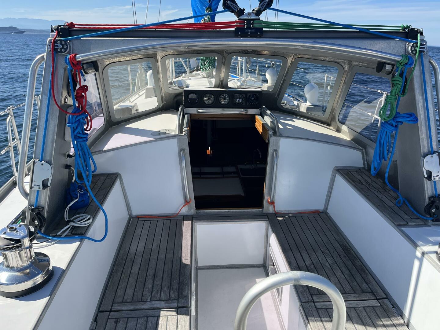 The cockpit bridge deck is level with cockpit seating to create an additional seat and to prevent seawater from coming below.