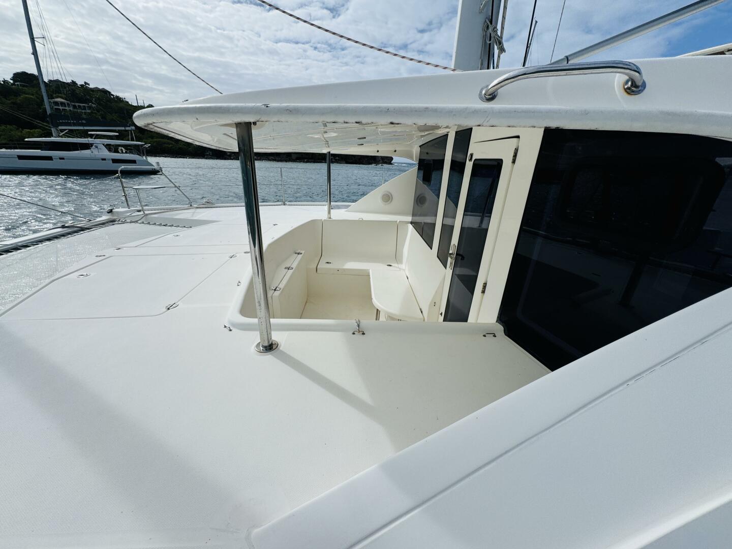 One of the most distinctive features of the Leopard 44 is its revolutionary forward cockpit design. Accessible directly from the main saloon through a forward door, this comfortable lounge area offers an additional outdoor living space that truly transforms the onboard experience. It creates a natural flow of air through the vessel while providing a private and relaxing place to enjoy morning coffee, sunset cocktails, or quiet moments surrounded by panoramic ocean views. This innovative feature has become a hallmark of the Leopard brand and remains one of the most loved aspects of the Leopard 44 design.