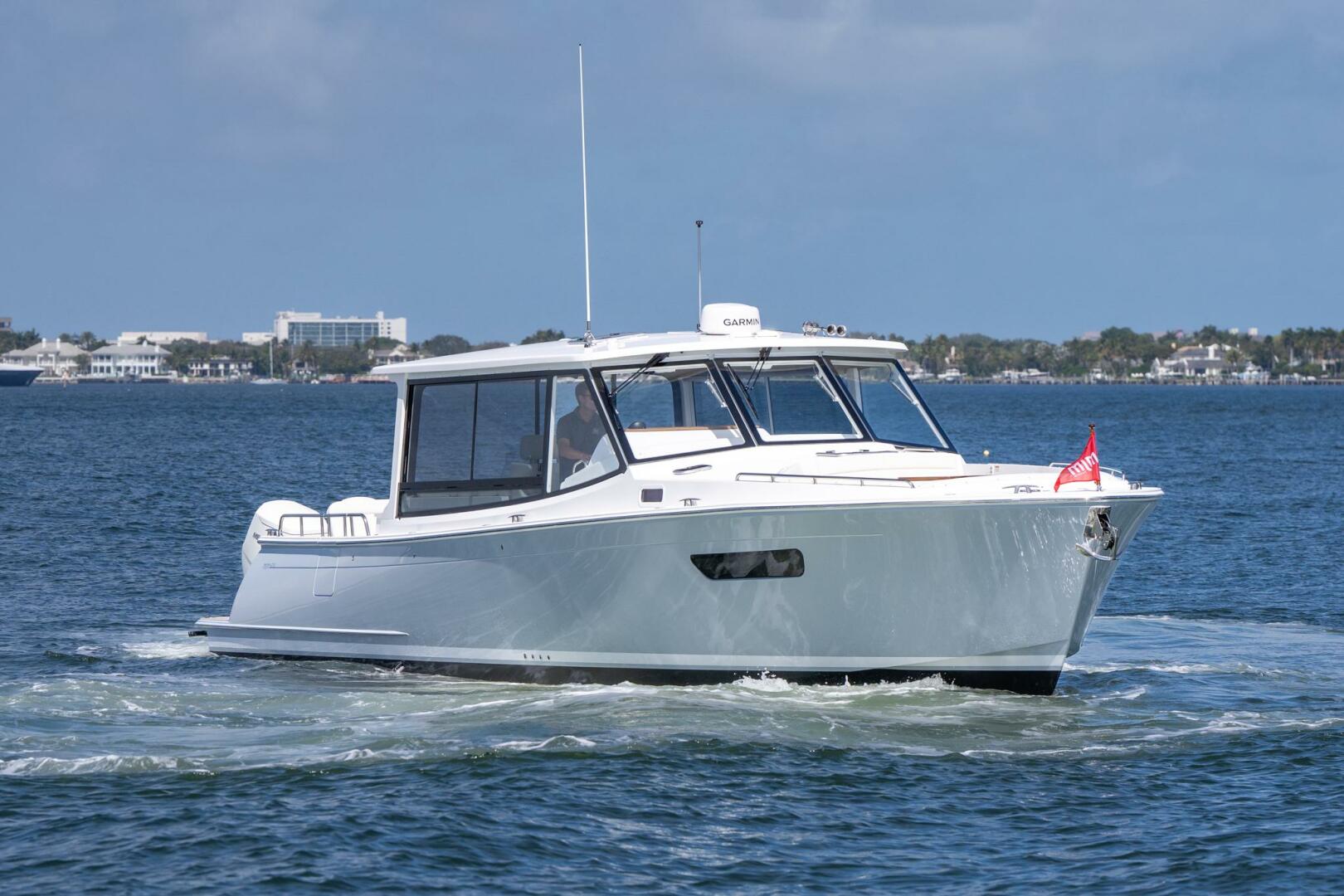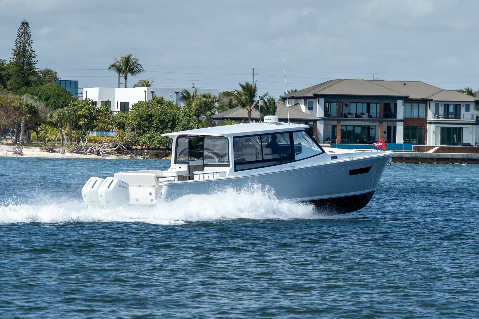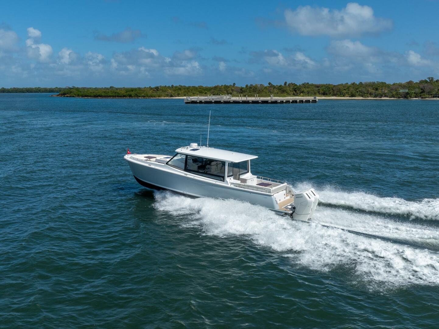 The MJM 47X combines elegant New England styling with advanced performance and craftsmanship. Powered by twin Mercury 600 HP V12 Verado outboards with joystick piloting, Skyhook, autopilot, and bow thruster, this yacht delivers exceptional handling and effortless maneuverability.