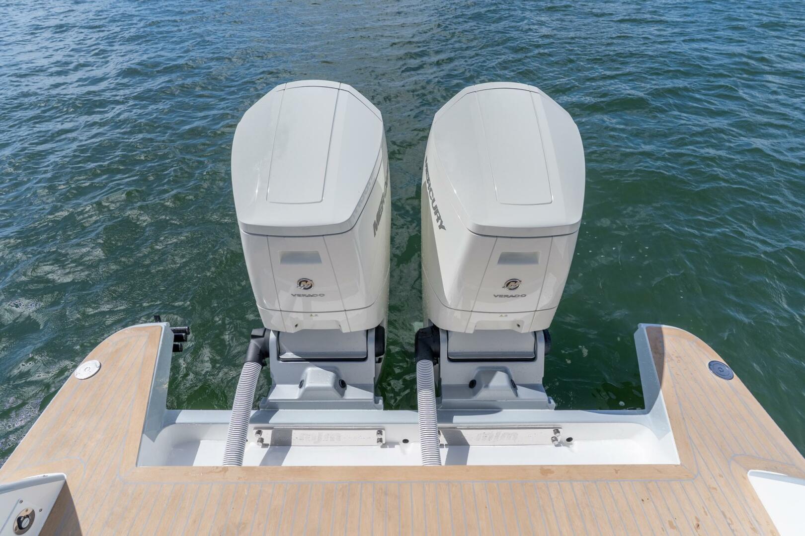 - Twin Mercury 600 HP V12 Verado Outboards with Joystick, Skyhook, Autopilot & Bow Thruster