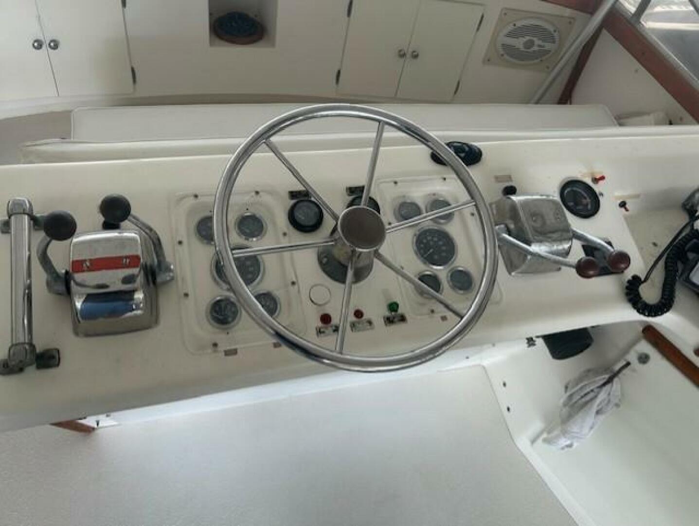 This is a Roomy Classic Sport Fisherman that has about 2320 hours on Twin Detroit Diesel 6-71TI Engines (450hp ea). It is equipped with Bimini Top; 2 Marine Heat/Air Units; Lectrasan Waste System; Two Staterooms with 1 Full Head; Clothes Dryer only; Teak Interior; Underwater Lights; VHF Radio; Garmin GPS; Salon TV; Cabin Stereo; Full Size Fridge, Microwave Oven; Cooktop; 8 KW Westerbeke Generator with 3367 hours; Canvas is in Good Condition; Bottom Painted in 2022.