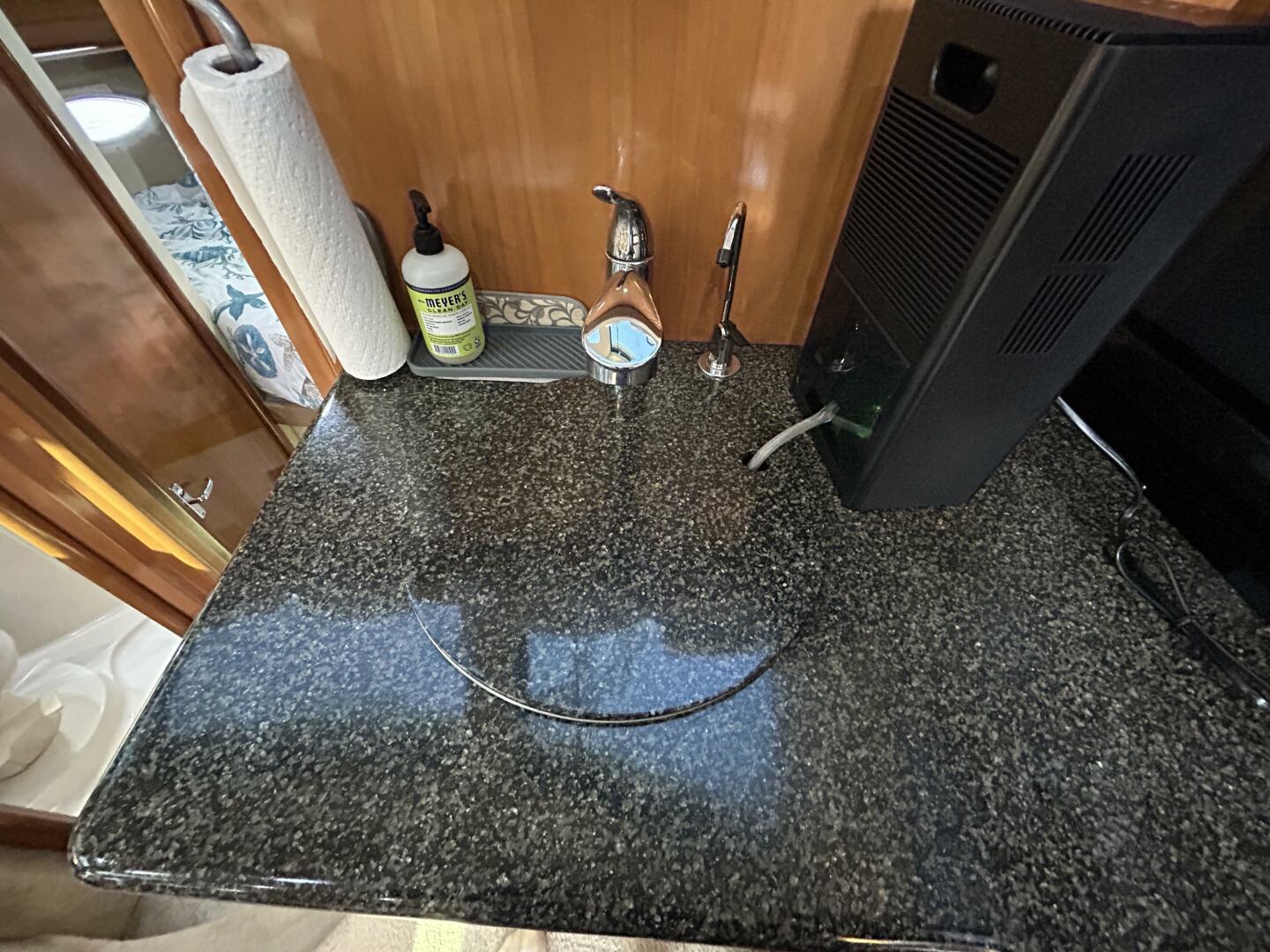 From the fiberglass swim platform, you enter the hardtop covered aft deck with bench seating and find same level side deck access on each side or a door into the salon below. Once inside the salon, you will find a full couch to port that coverts into sleeping quarters for two. Forward ia a settee for four with ample under storage. Forward starboard side is the Galley with composite countertop, under-counter frig/freezer, stainless sink, ice maker, convection oven, two burner cooktop and ample counter space. Aft starboard is comfortable upholstered chair and entertainment system including TV/soundbar, stereo & Starlink. A single step down forward to port is guest head with privacy access to a full double bed forward v-berth with it's own climate control & more storage. Aft of the Salon is three steps down to the Primary Stateroom with its own climate control, ample stoarage, private head with shower.