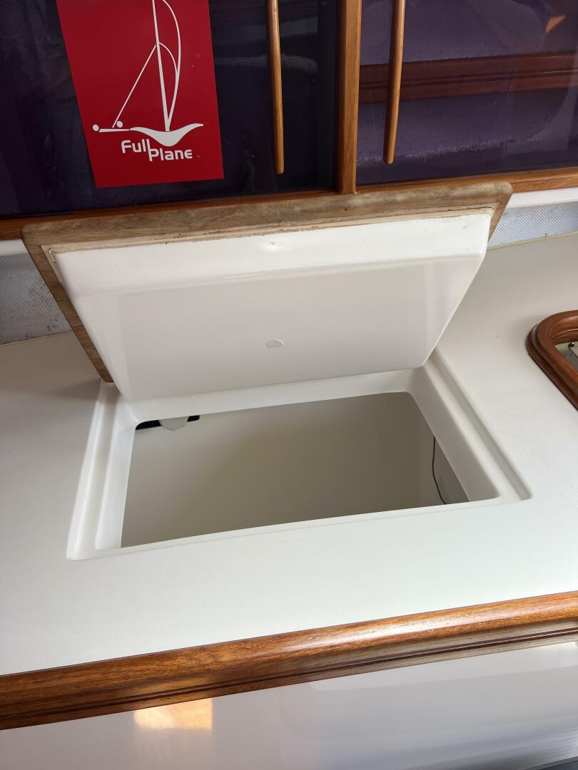 The Sydney 32 narrow sleek fiberglass hull, paired with a fin keel and spade rudder, ensures maximum maneuverability and speed in a range of wind conditions. Its racing pedigree is evident in its handling, with quick acceleration and responsive helm control. She has Grand prix features like integral carbon Fiber chainplates. The chainplates are molded into a one-piece laminated structural grid that incorporates the keel attachment, mast step, engine mount, and rudder bearing as seen on America’s cup boats.