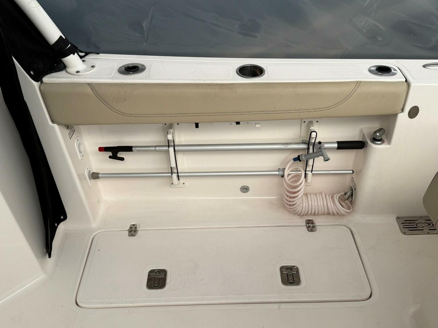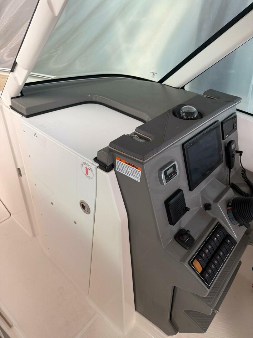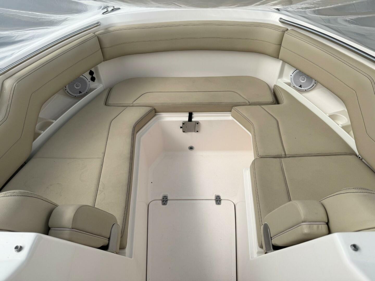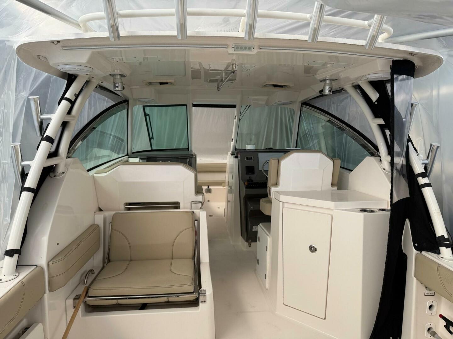 Opposite of the starboard helm seat is a double wide companion seat to port.