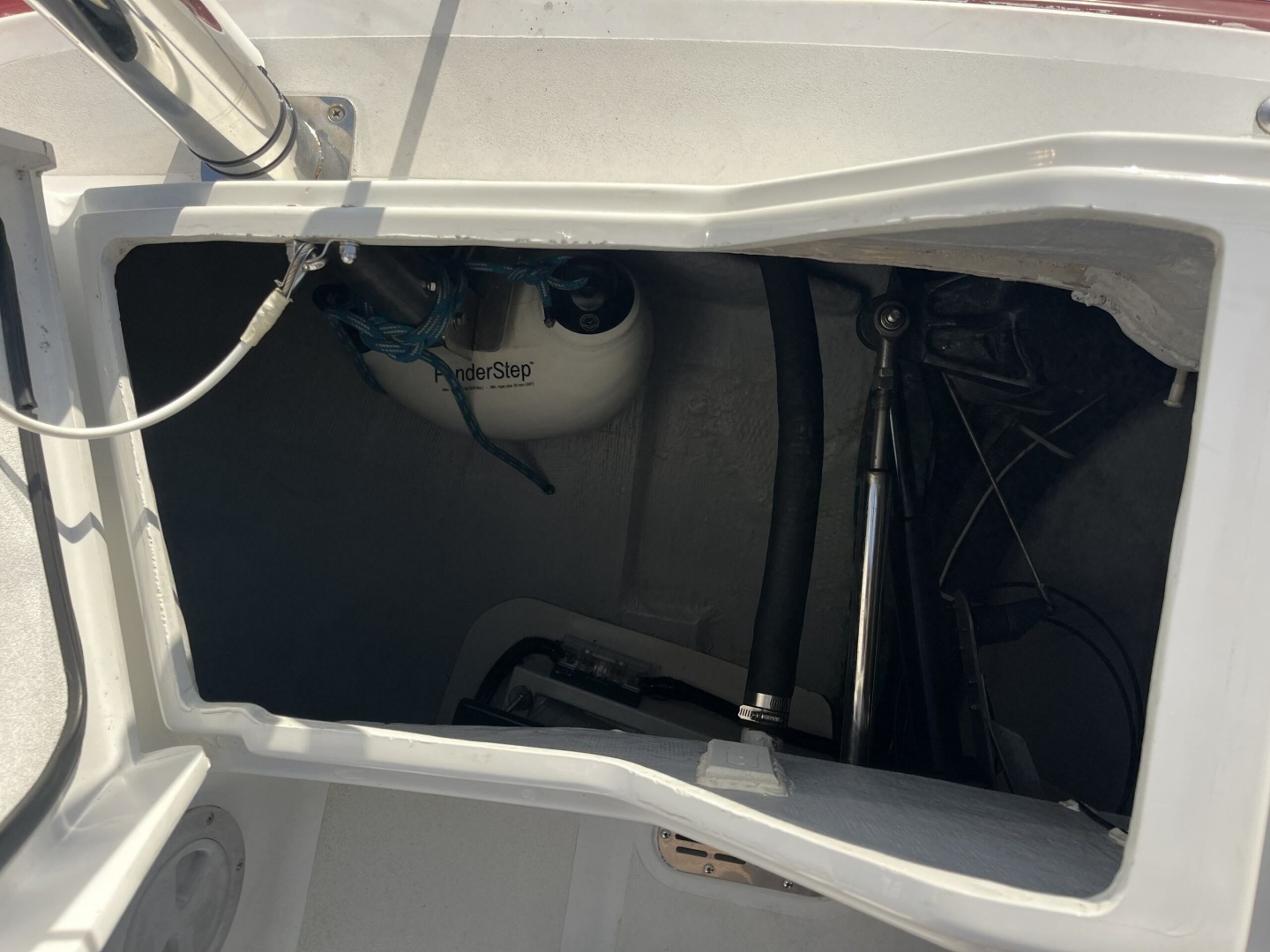 Custom stern-tie reel, mounts on radar post. 450ft of ½" float line.