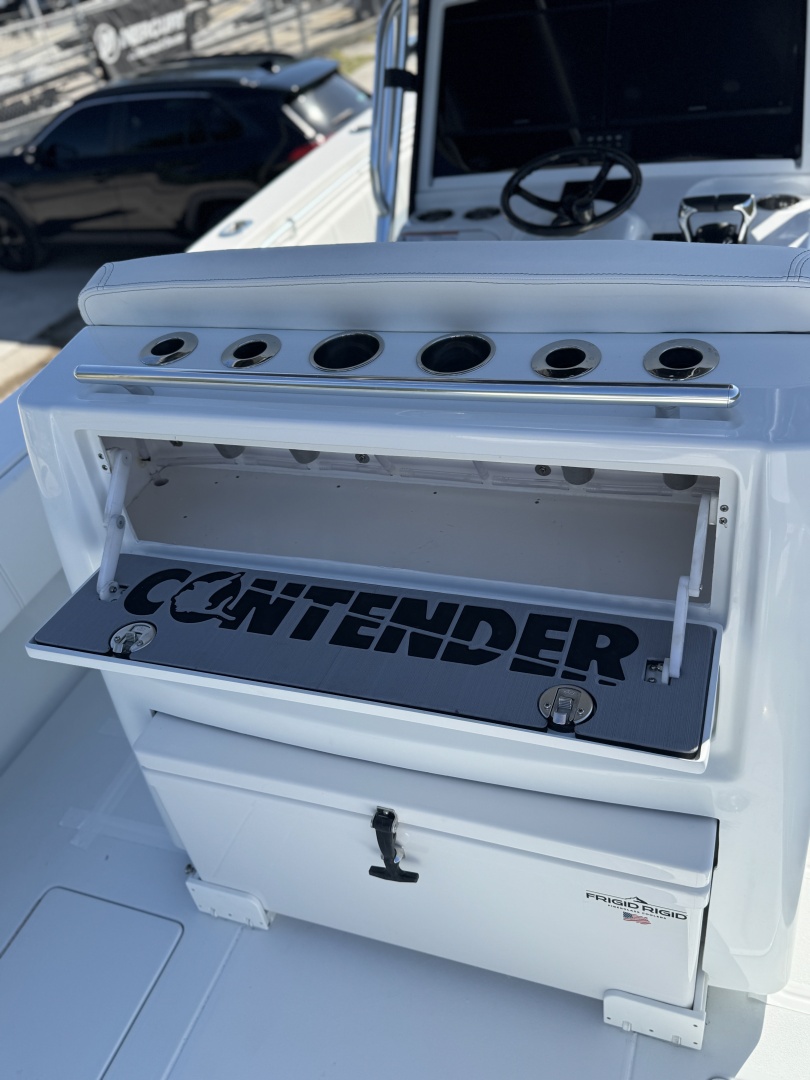 Speaking of fishing, this Contender boasts a total fishbox capacity of 350 gallons, providing ample space to store your prized catches or keep your beverages on ice. And when it's time to clean up, the 26-gallon fresh water tank has you covered.