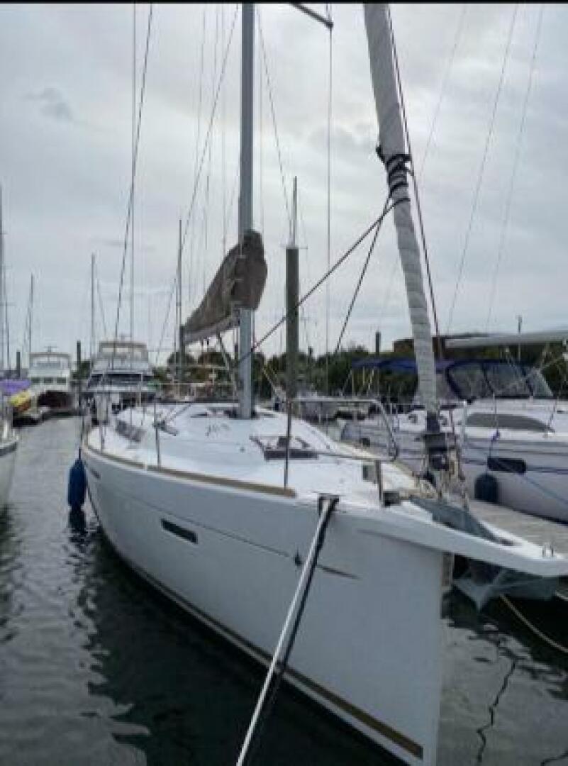 We sold this boat new to the present owner. Hence, a one owner 419 that has been meticulously cared for by this owner. He is moving up in size and would like to sell. Low hours and use on the sails which are cleaned and stored indoors every year. She is a classic mainsail with full battens and yet still easy to handle by one person with a lazy bag cover and lazy jacks.