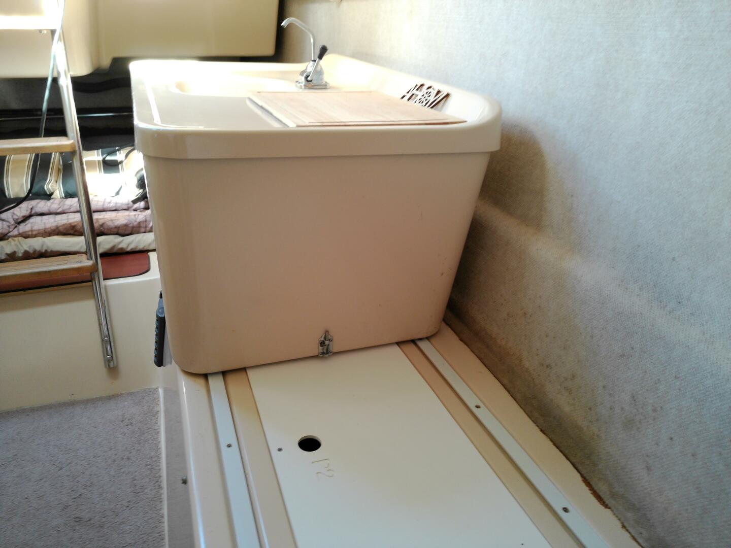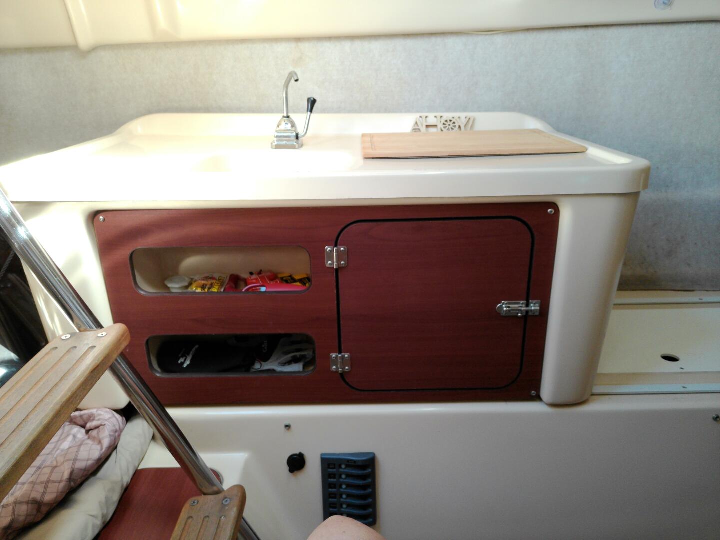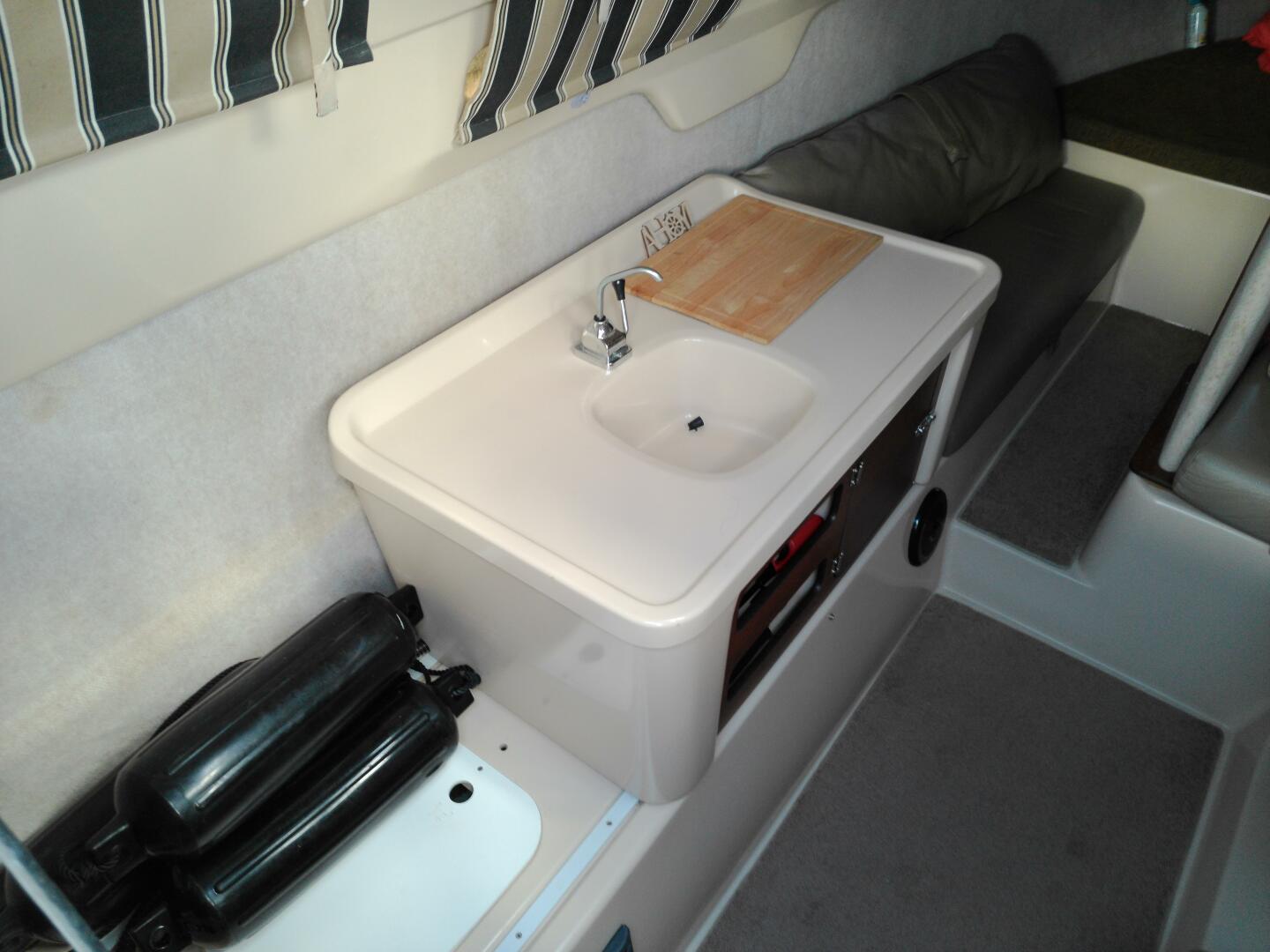 Galley with sink, butane cooktop and plenty of storage