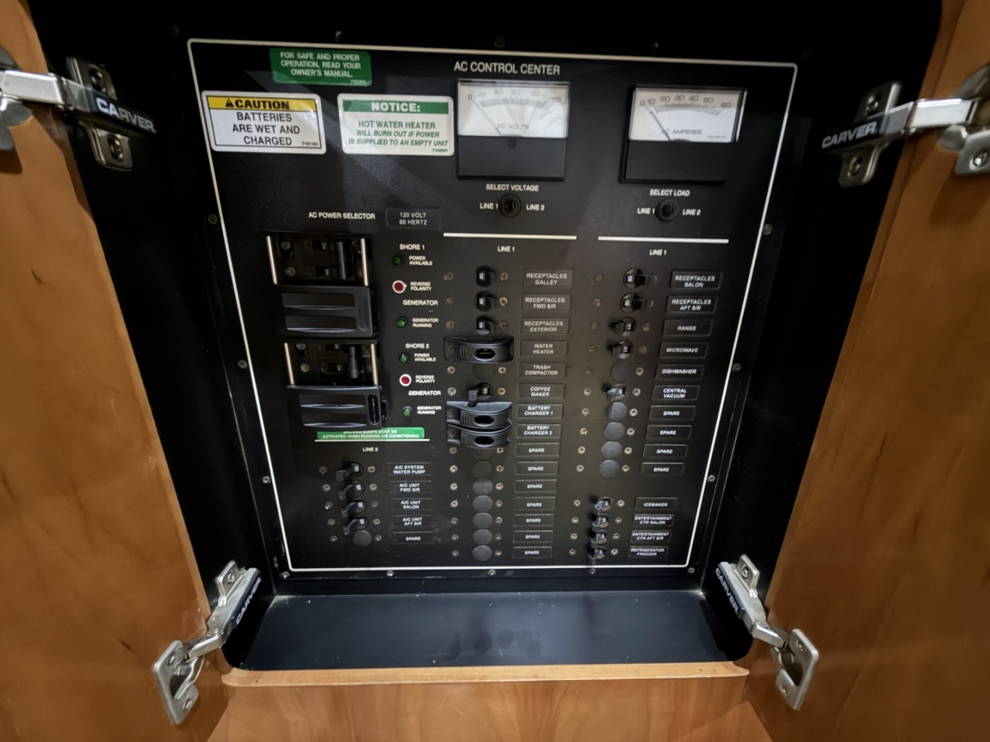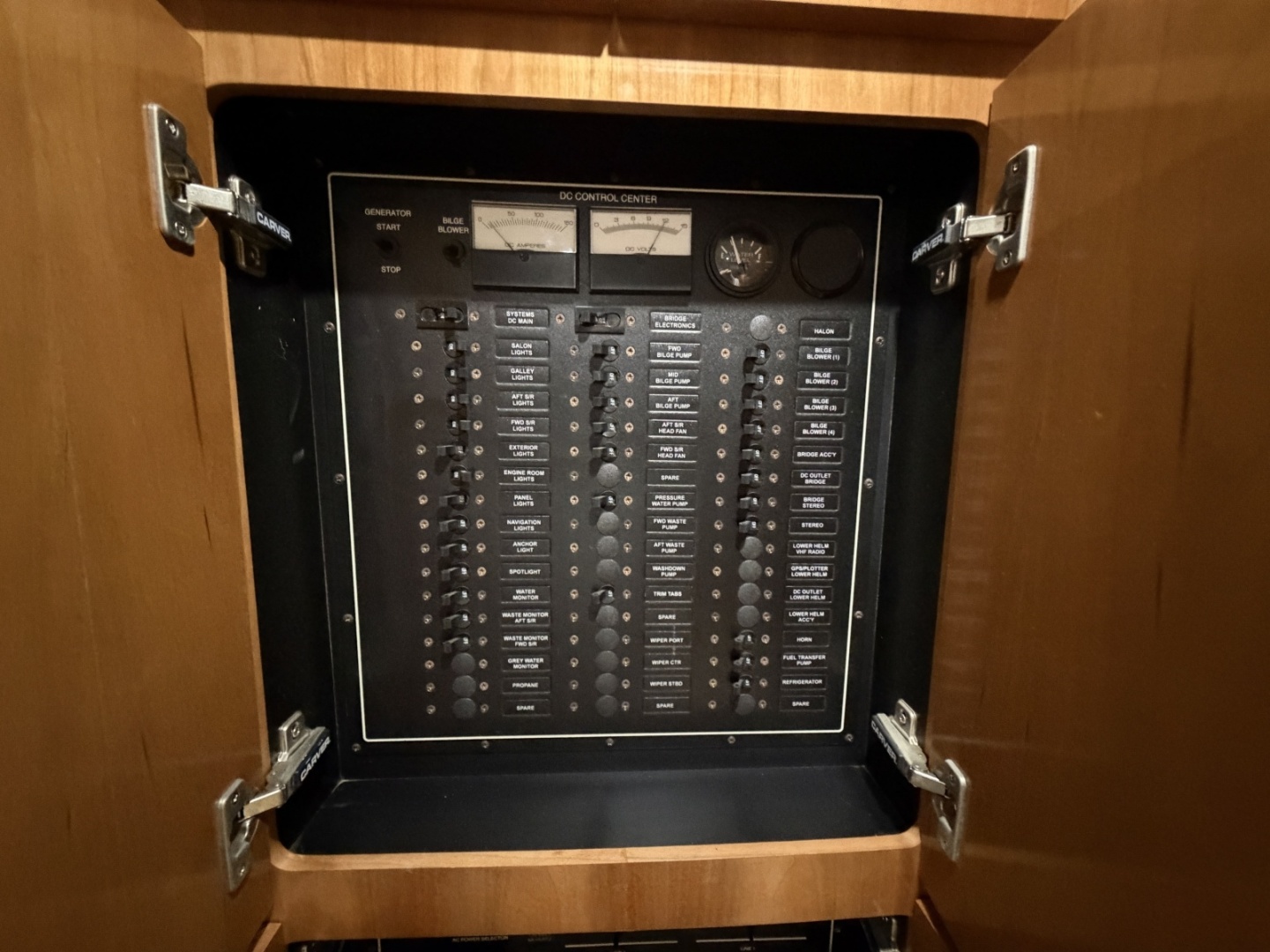 Few other cockpit yachts this size can match the Carver 444 for interior space and comfort. A large full-beam salon, finished with high-gloss cherry cabinets, Ultraleather seating, tiered cabin windows and nearly 7' of headroom.