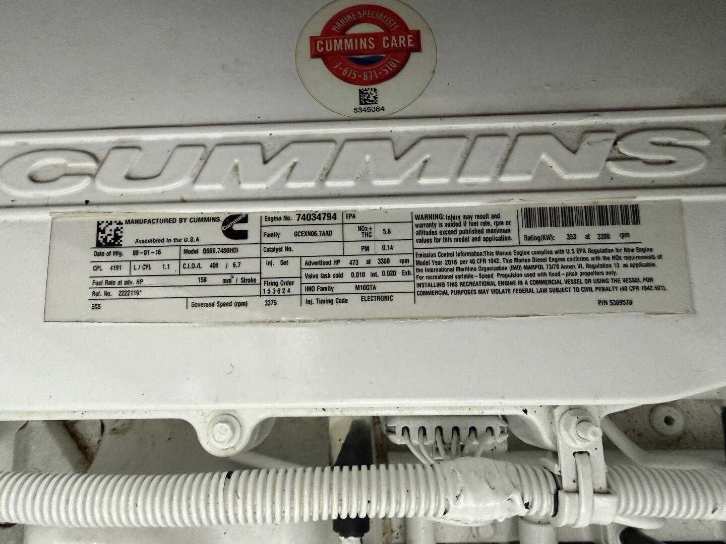 - Engine Model: QSB 6.7l 480 T3