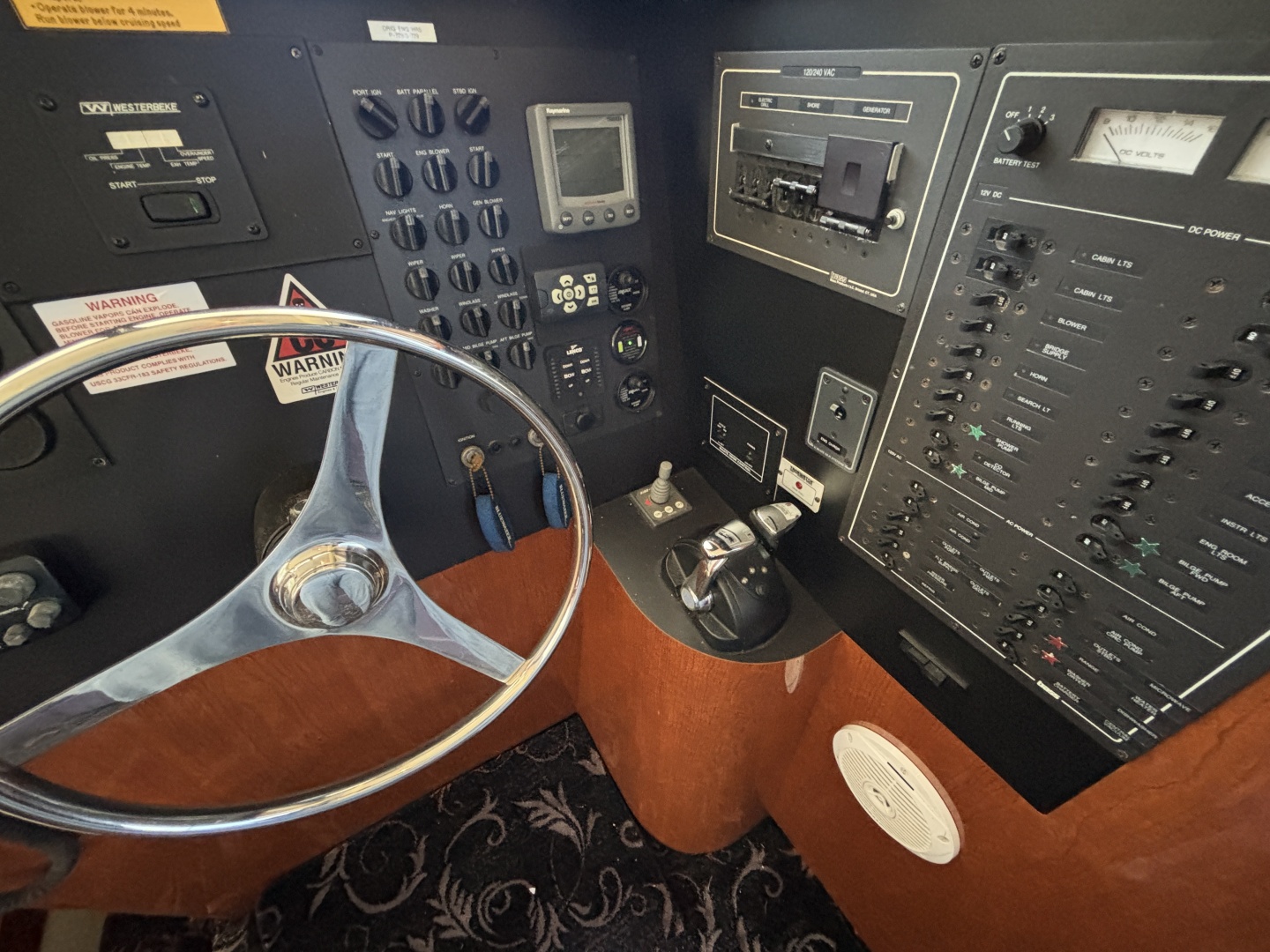 - Helms: Vessel served by 2 helm station each fitted with steering, engine and transmission controls, engine instruments, navigation, and communication
