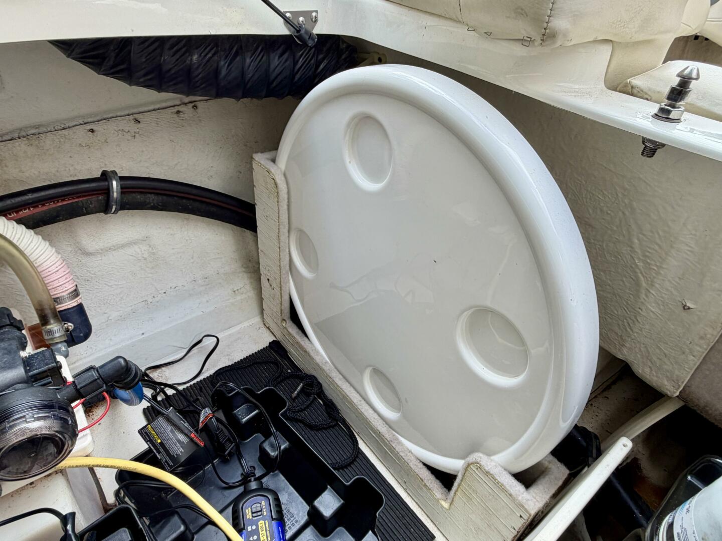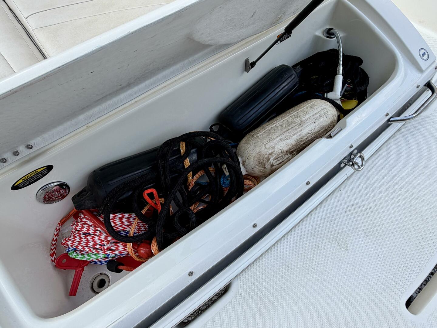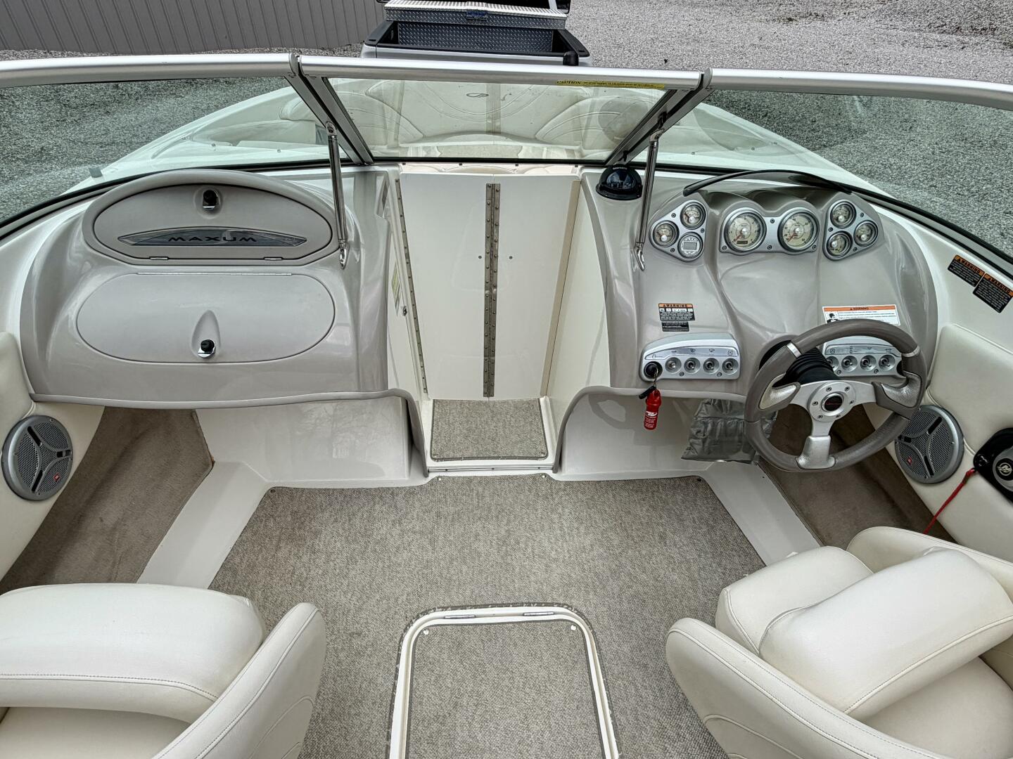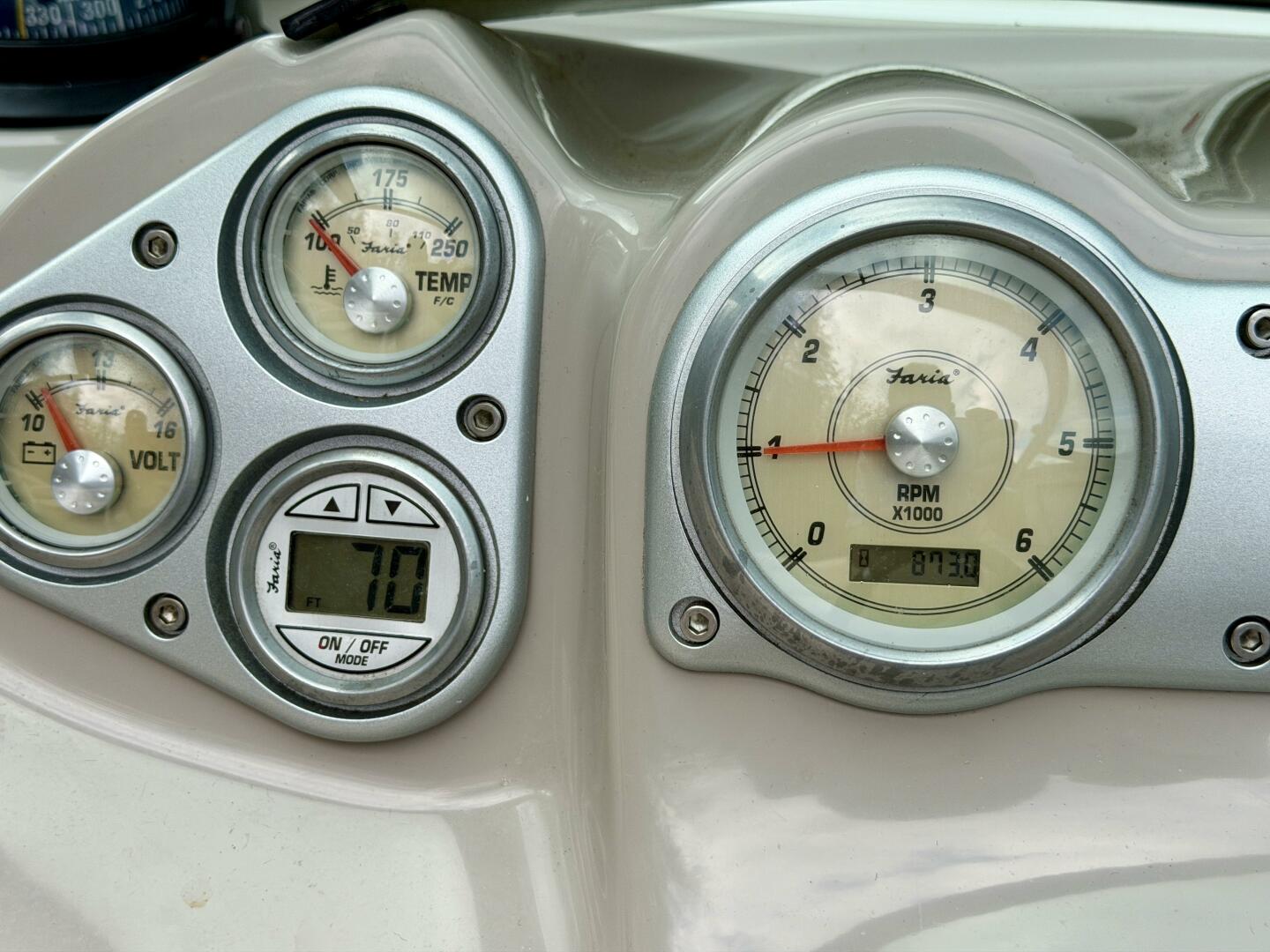 Gauges: Battery Volts, Engine Temp., Depth Finder, Tachometer, Speedometer, Engine Oil Press., Drive Trim, & Fuel Gauge, Danforth Compass, (2)12Volt Power Outlets, Tilt Steering Wheel,