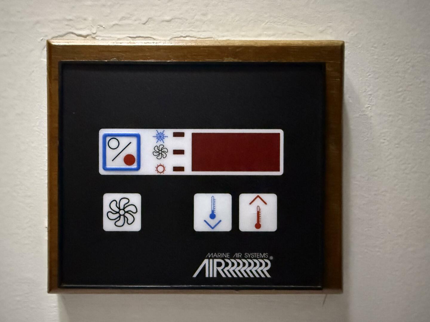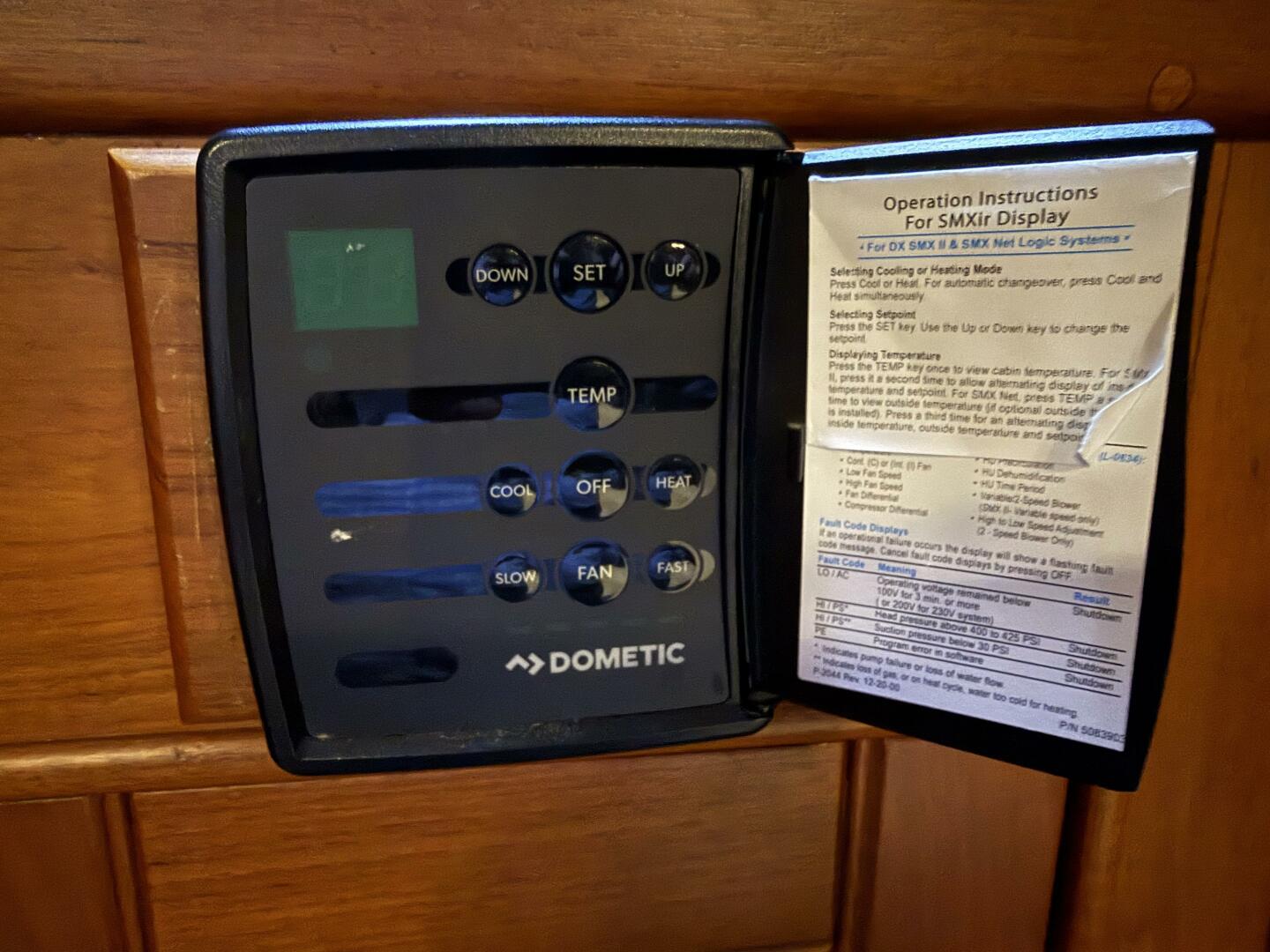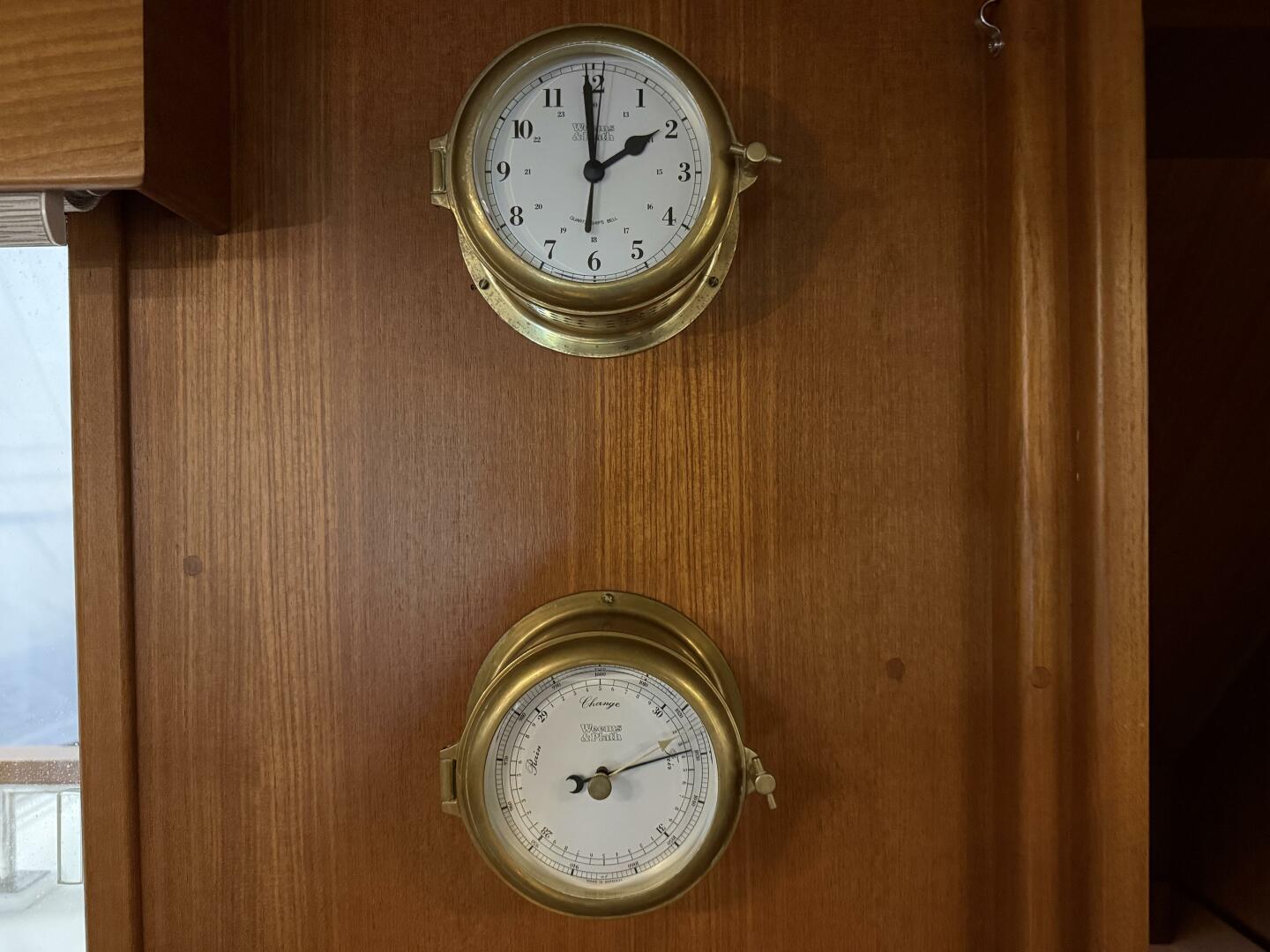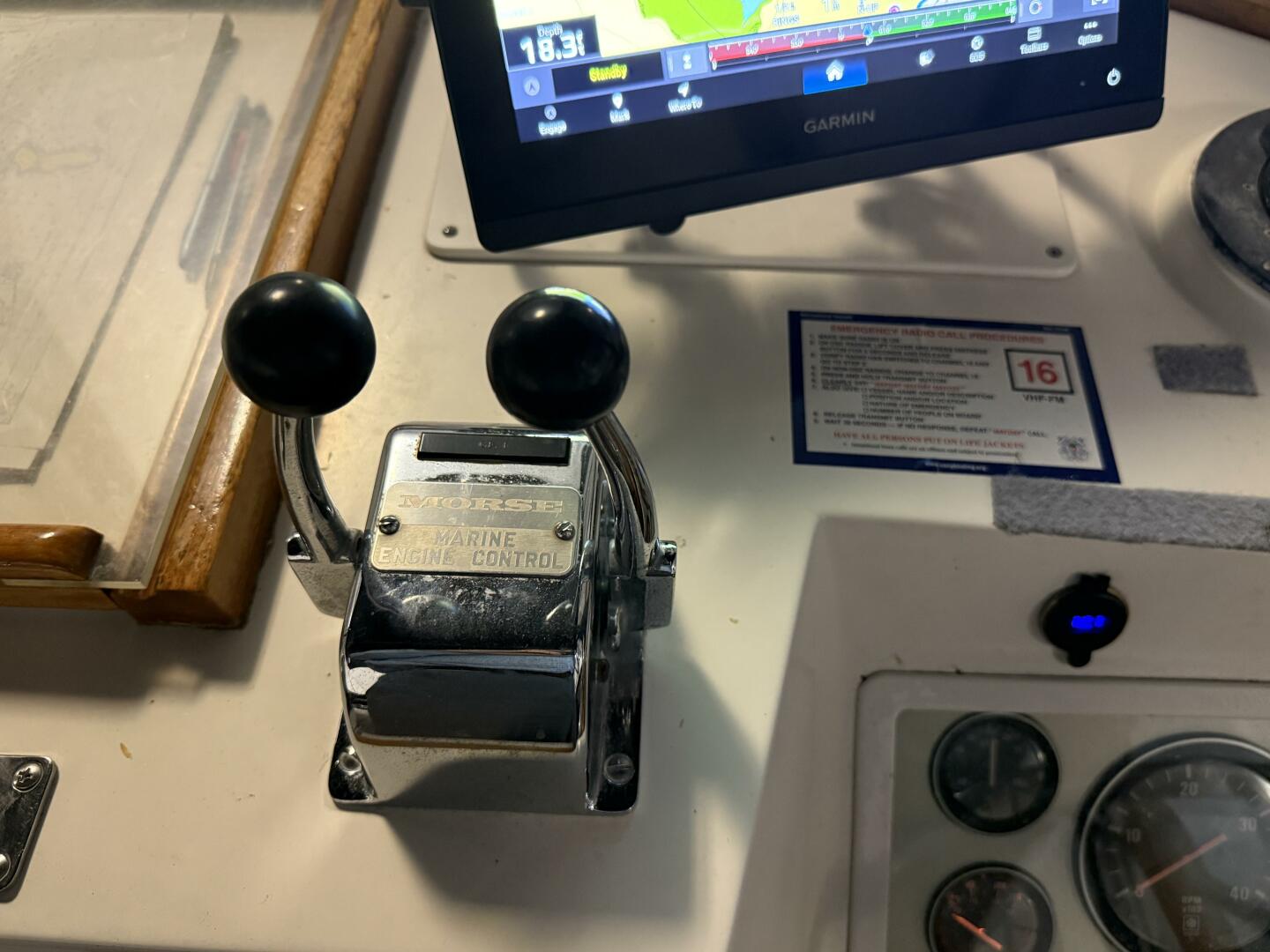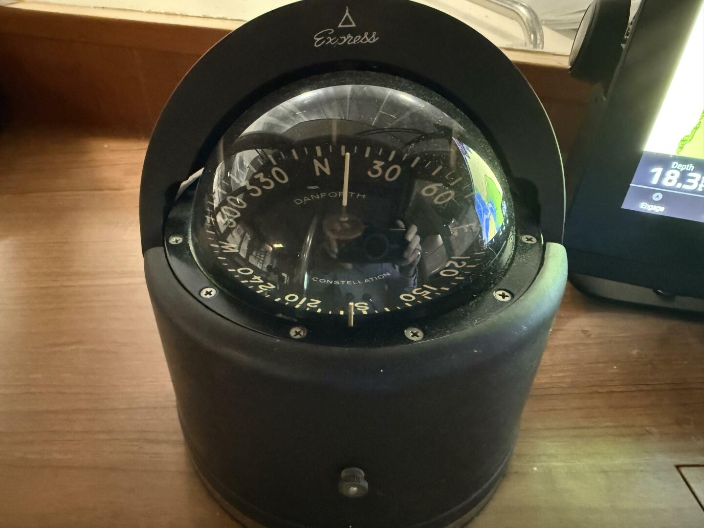 Forward of the main salon on the starboard side is the helm with all brand new navigation electronics, a beautiful teak wheel and immediate door access to the side-deck.
