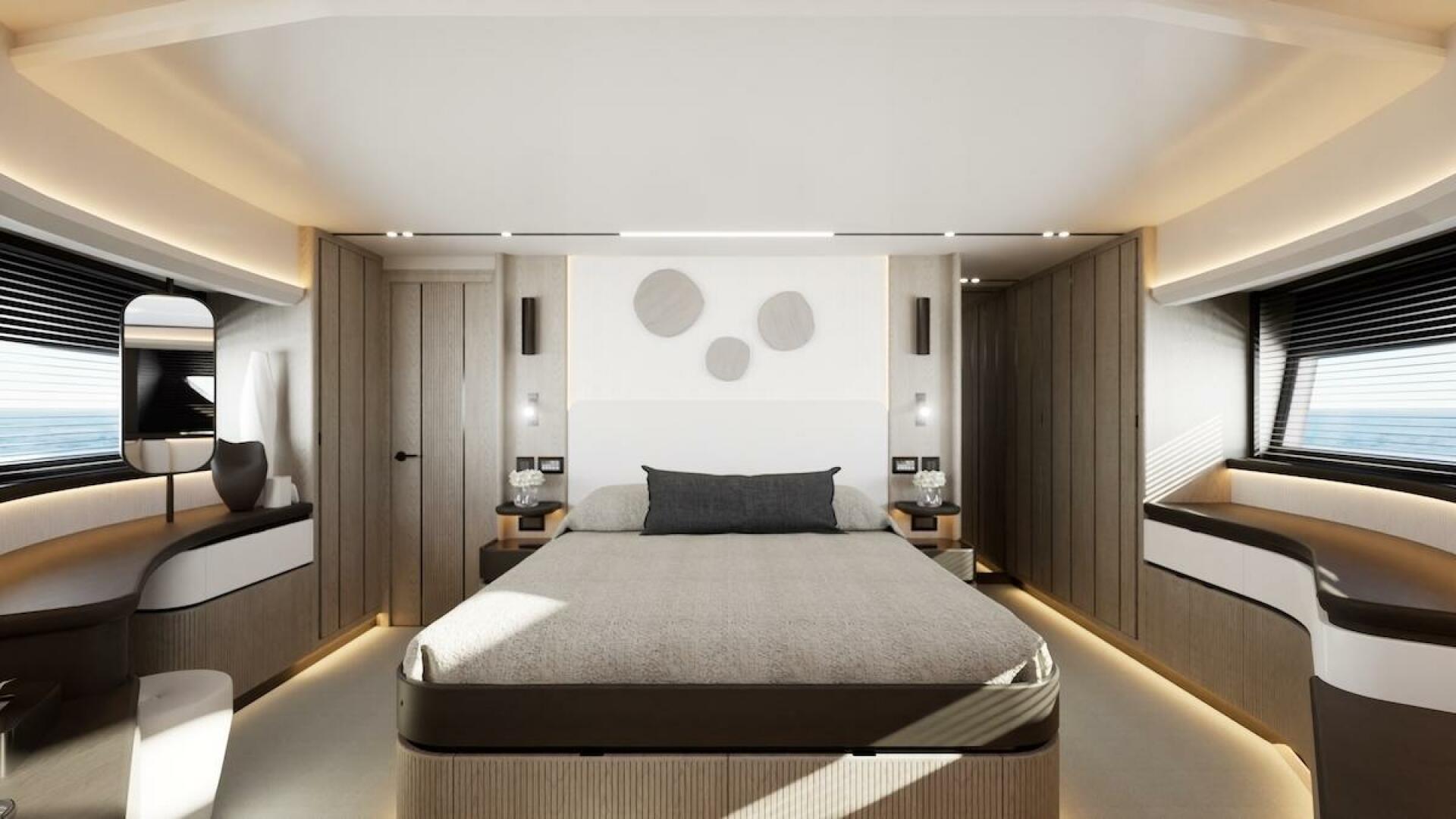 - Full-beam amidships master suite