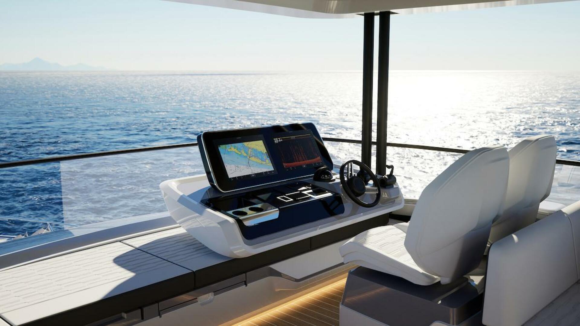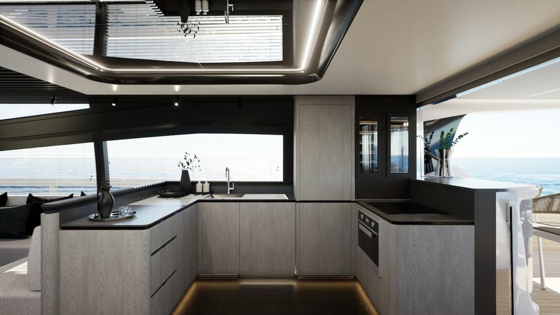 The Pearl 73 features a galley-aft layout, designed to create a natural connection between the cockpit and interior spaces.