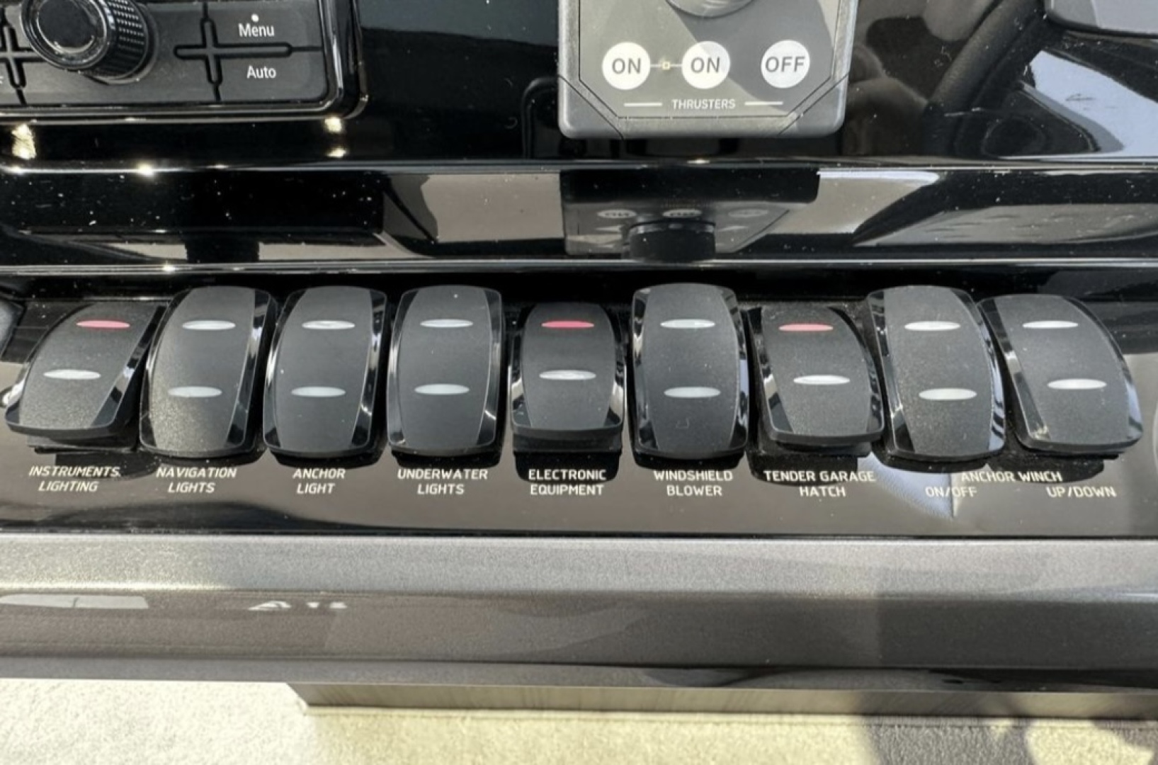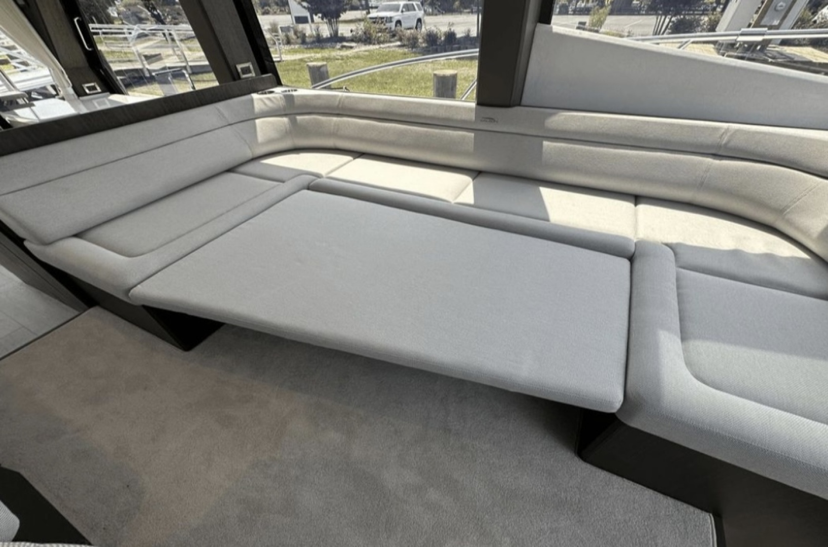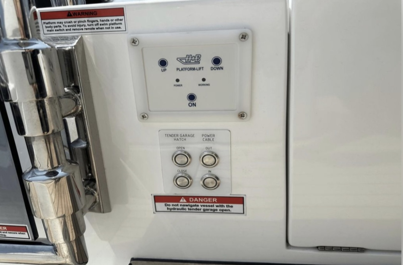 Notable features include Seakeeper 6 gyro stabilization, Galeon’s signature Beach Mode with fold-down balconies, hydraulic swim platform, hydraulic tender garage, and bow and stern thrusters, making docking and entertaining effortless. The yacht is also equipped with a full Raymarine electronics suite, upgraded air conditioning system, diesel generator, Cablemaster shore power, underwater lighting, and multiple entertainment systems.