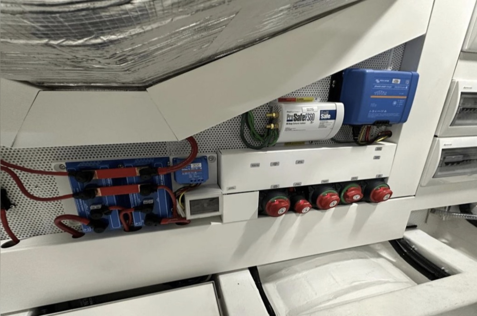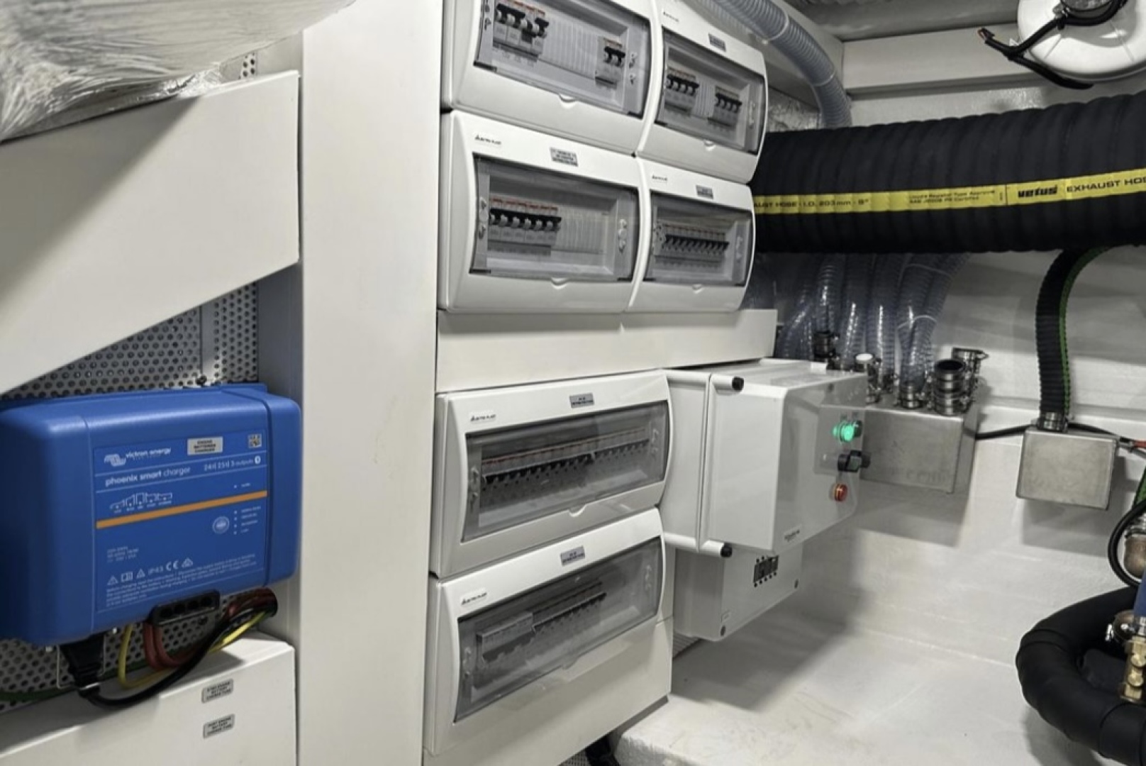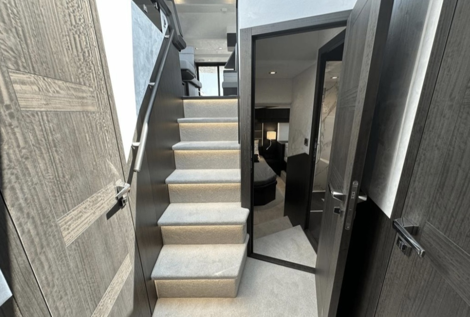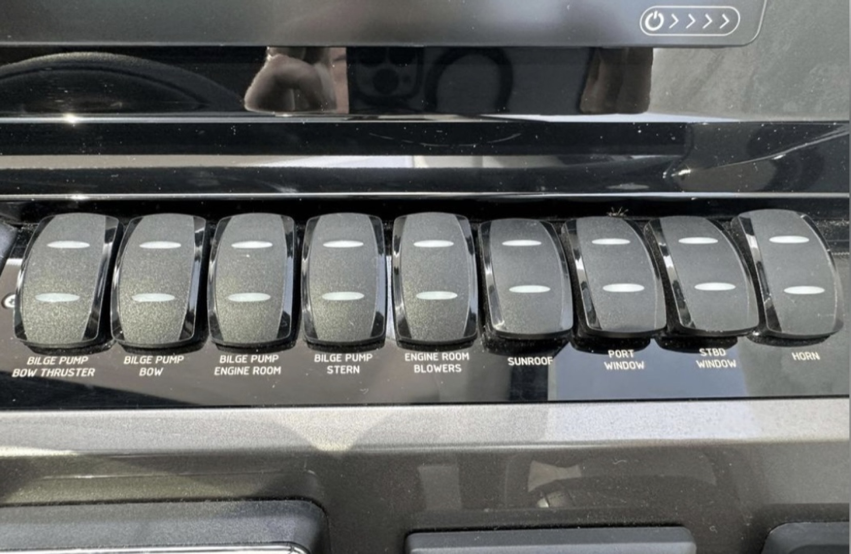 Notable features include Seakeeper 6 gyro stabilization, Galeon’s signature Beach Mode with fold-down balconies, hydraulic swim platform, hydraulic tender garage, and bow and stern thrusters, making docking and entertaining effortless. The yacht is also equipped with a full Raymarine electronics suite, upgraded air conditioning system, diesel generator, Cablemaster shore power, underwater lighting, and multiple entertainment systems.
