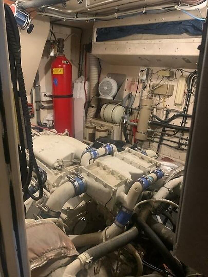 This model offers a desirable 3‑stateroom, 3‑head layout, along with separate engine rooms that provide both forward and aft access—an uncommon and highly valued design choice for maintenance and serviceability. Additional highlights include a pass‑through galley, molded foredeck seating, bow pulpit, and port and starboard wheelhouse doors for excellent deck access.