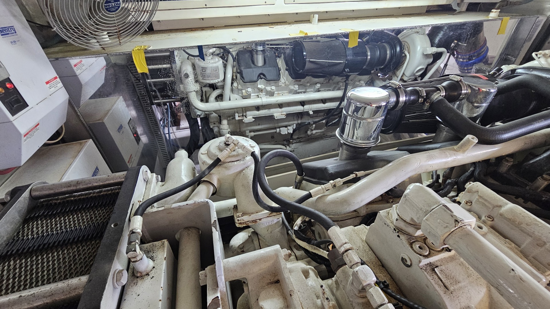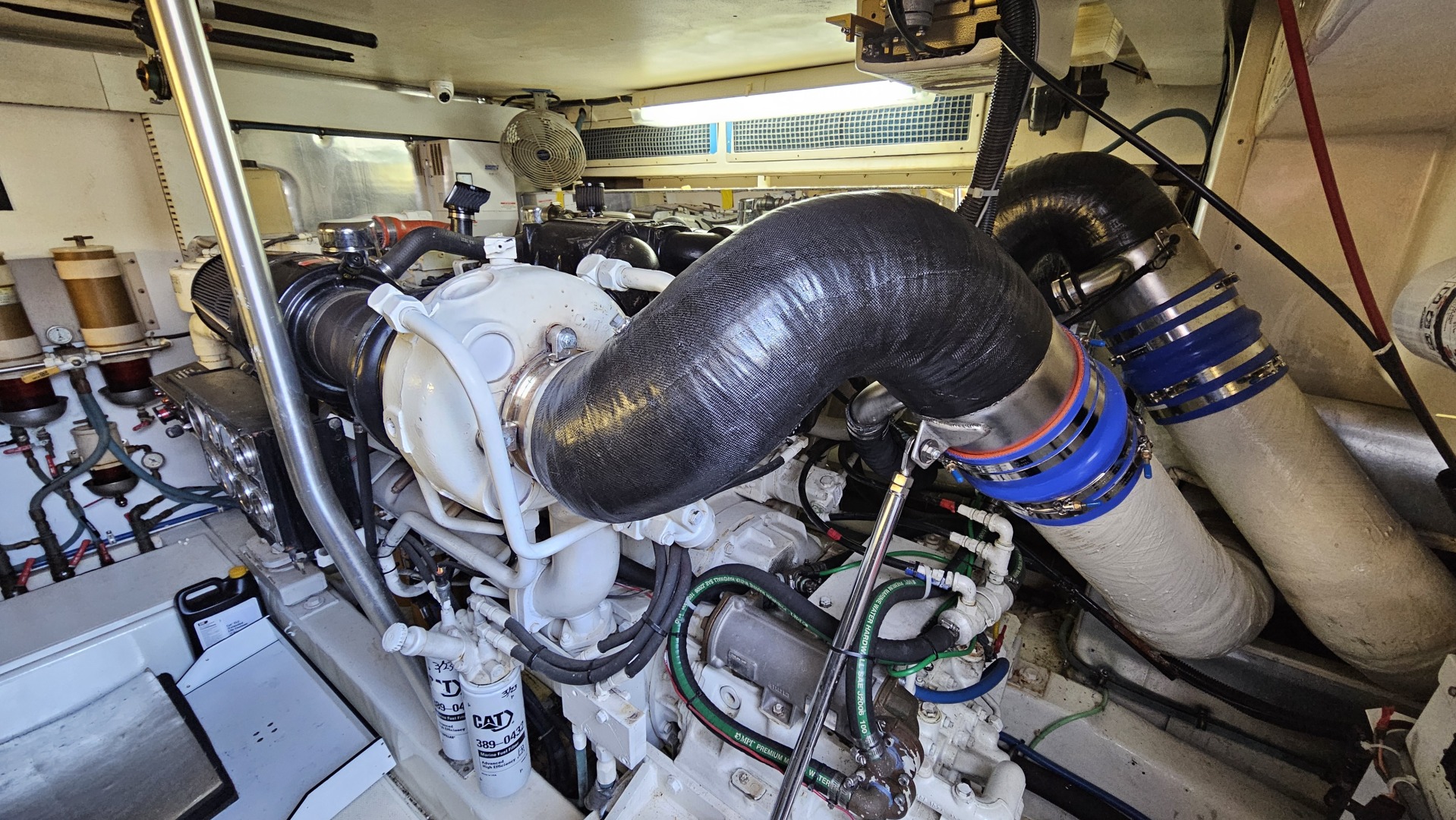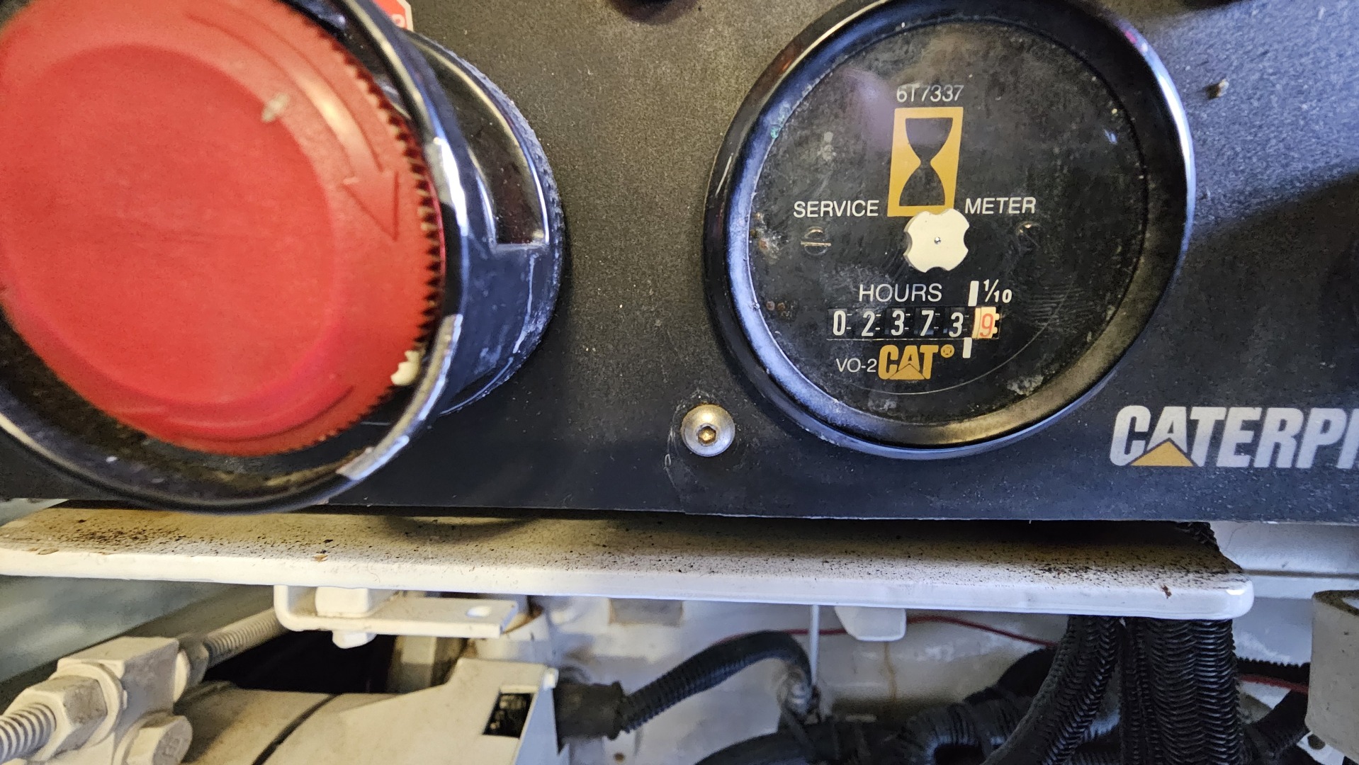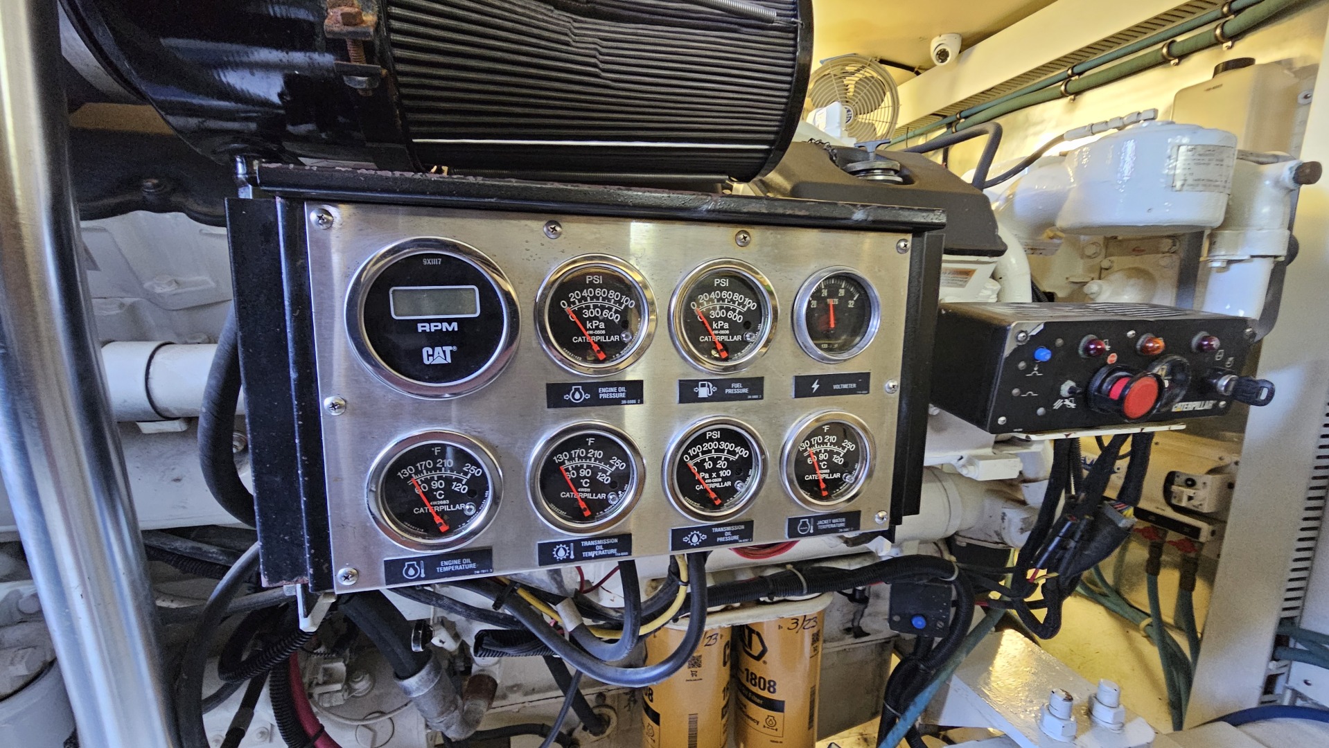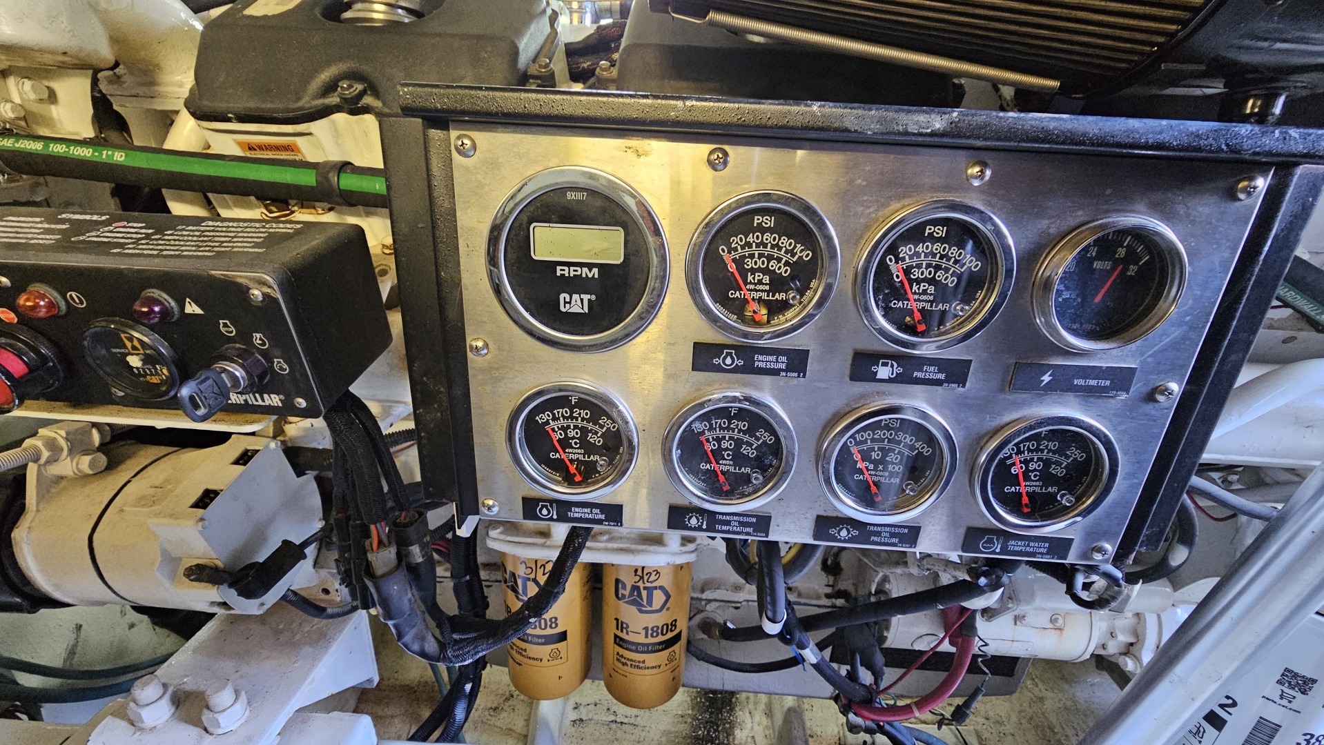 1,400hp Cats cruise at 25 knots at 1,950 RPMs (32–33 knots top).