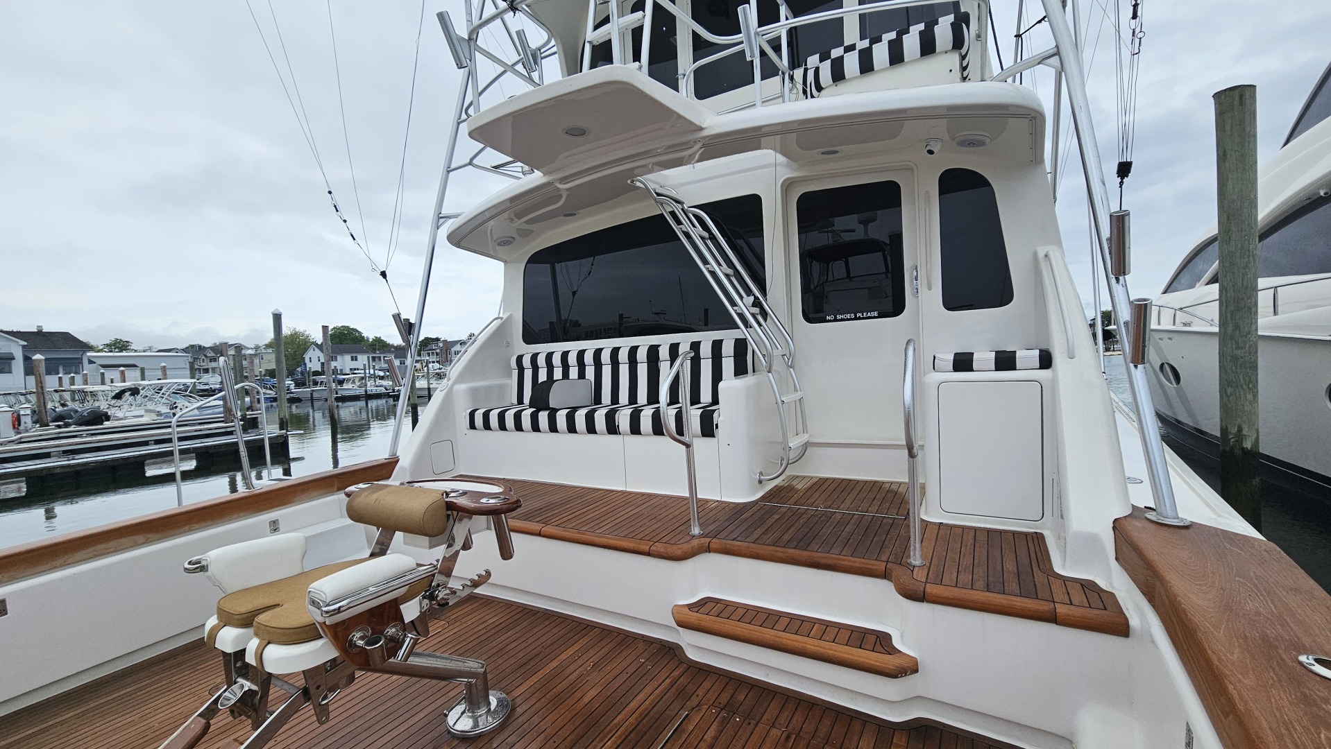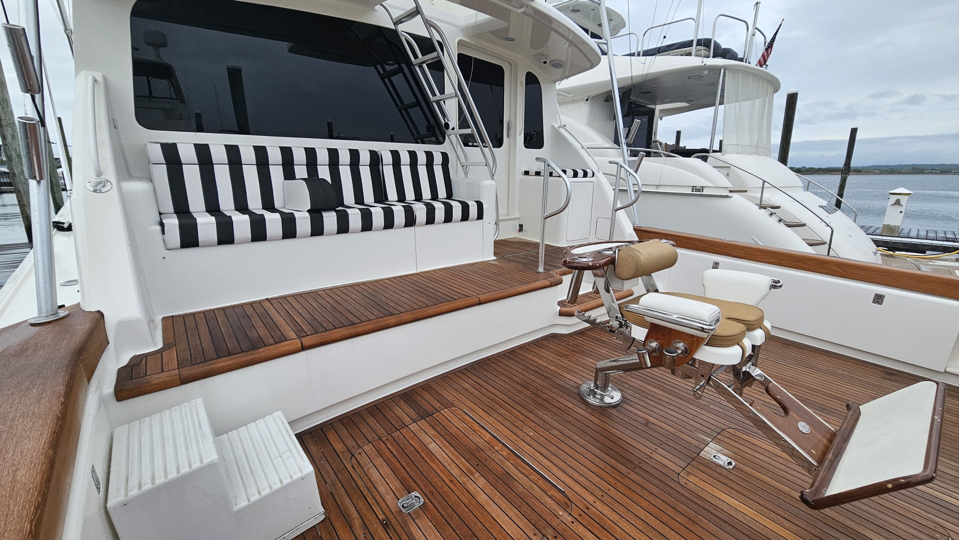 or the salon. The cockpit, with over 150 square feet of space, comes with a full complement of fishing amenities and a