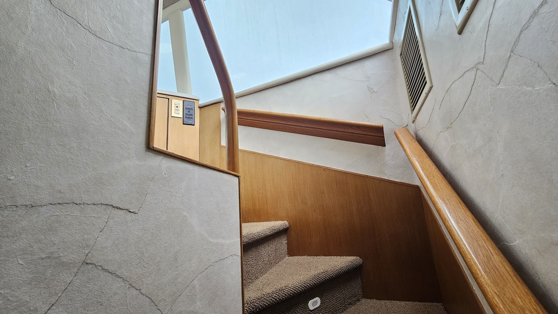 master stateroom and the second guest cabin. In a practical design touch, the flybridge is reached from either the cockpit