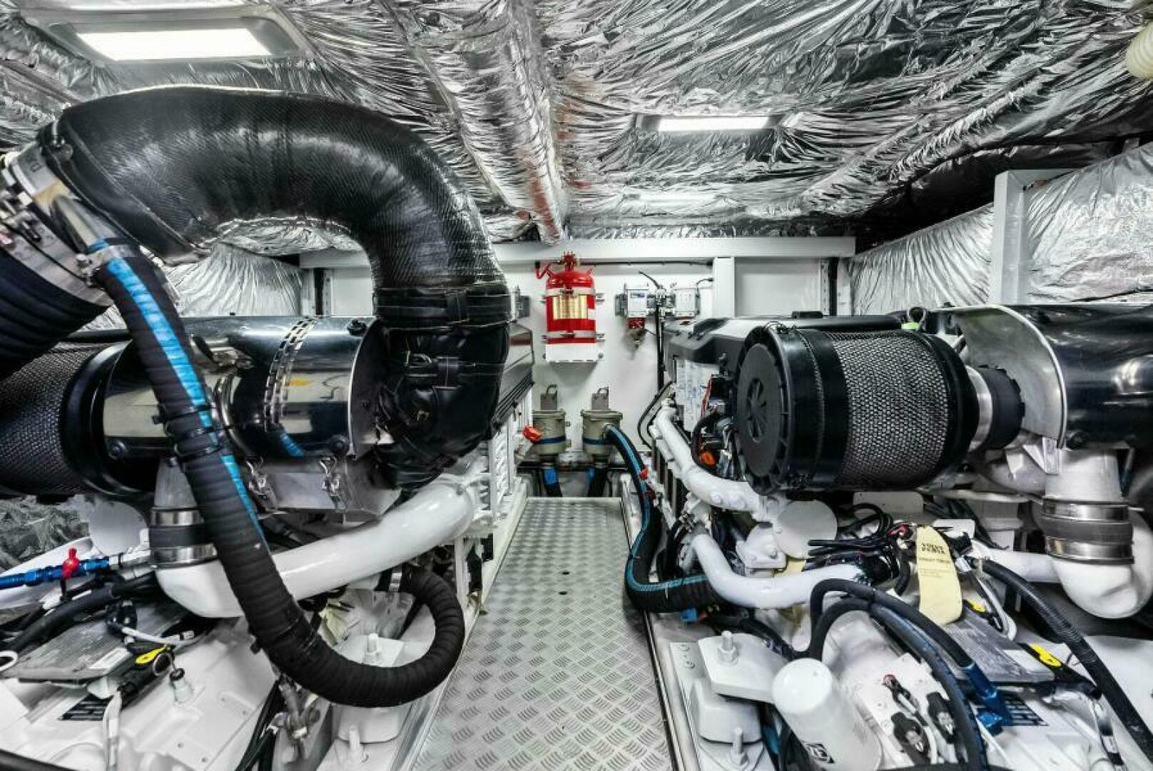 - Lockable gas strut assisted hatch to engine room, lazarette and optional crew cabin