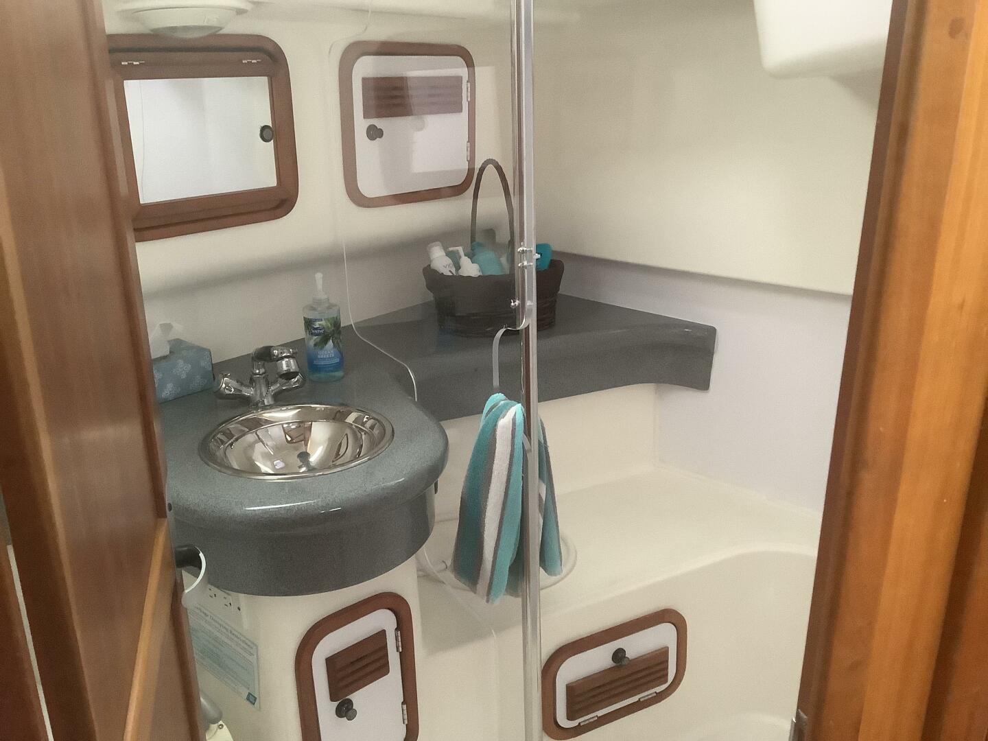 - Large aft head with separate stall shower