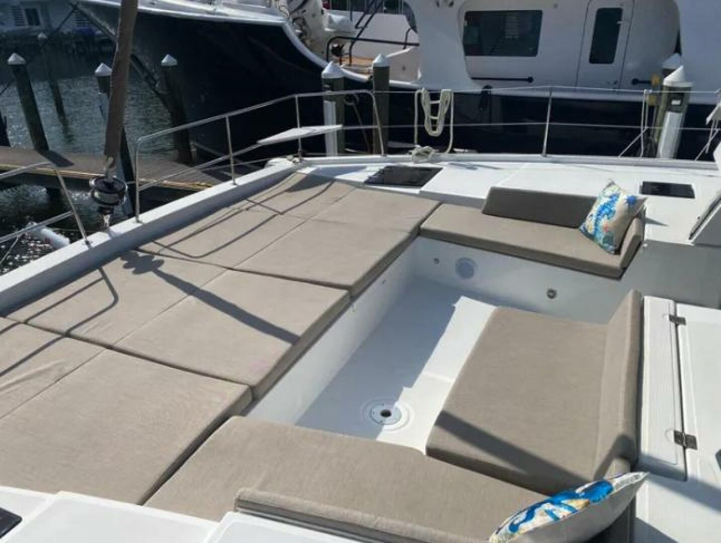 The outdoor living spaces aboard the Bali 4.2 are among the most generous in the 40-foot catamaran class. The aft cockpit opens fully via the signature garage door and flows into the saloon, creating an exceptional al fresco dining and entertaining area. The forward cockpit -- reached through a dedicated bow door -- provides a private, elevated seating space at the bow that is a genuine highlight of the Bali design and a feature buyers consistently comment on.
