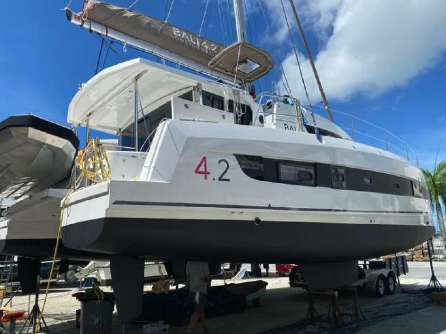 The Bali 4.2 has earned its place as one of the most talked-about cruising catamarans of the modern era, and for good reason. Designed by the Catana Group, the 4.2 breaks the mold of the conventional catamaran with its signature full-width "garage door" -- a glass panel that lifts flush into the saloon ceiling to merge the interior and aft cockpit into one seamless, light-filled living space. Add a dedicated forward cockpit with its own bow door, a 23-foot beam that delivers stability and deck space and a layout that genuinely lives like a floating apartment and you begin to understand why the Bali 4.2 draws buyers away from larger, more expensive alternatives. With a 4-foot draft and 42 feet of overall length, she is equally at home threading into shallow anchorages and crossing open water.
