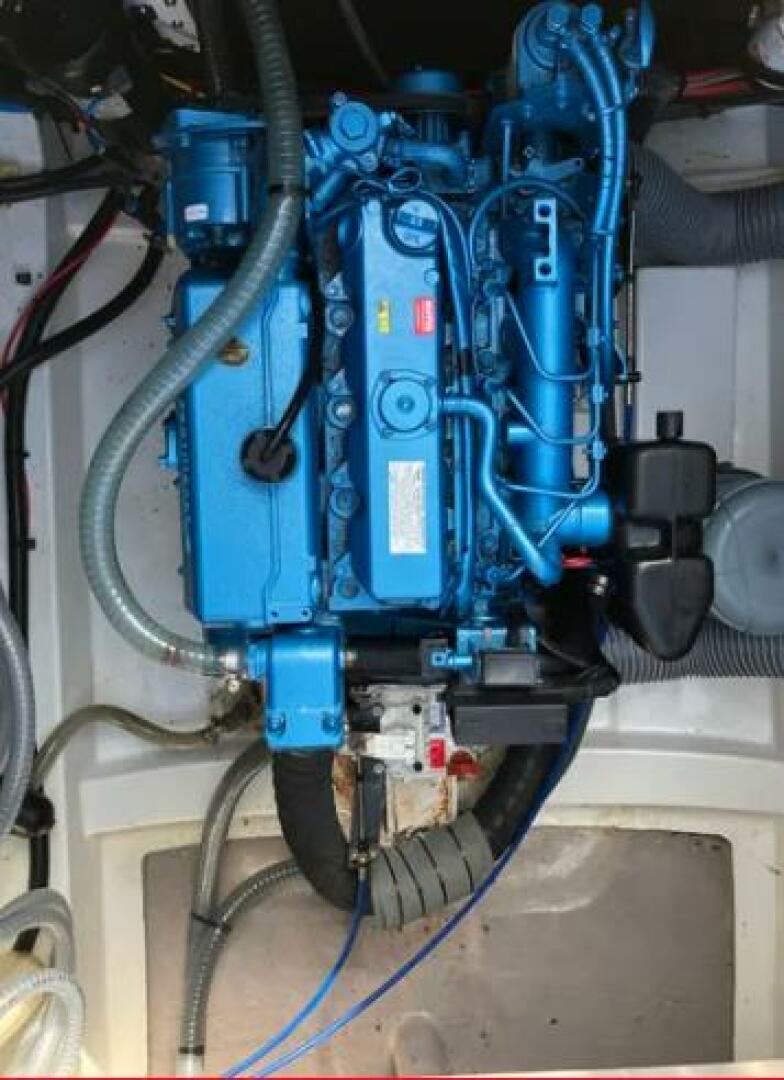 Nauti Habit is powered by twin Nanni 4.5 four-cylinder diesel engines producing 50 HP each -- a significant upgrade over the standard 30 HP factory fit. These engines deliver noticeably better performance and reserve power, particularly when motoring into headwinds or managing currents in tight anchorages. Both sail drives are fitted with upgraded three-blade folding propellers which minimize drag under sail while providing excellent bite under power. The port engine shows approximately 977 hours and the starboard engine approximately 1,015 hours. Cruising speed under power is a comfortable 7 knots. No bow or stern thrusters are fitted; the wide beam and independent twin-engine configuration provide ample low-speed control for confident single- or short-handed docking.