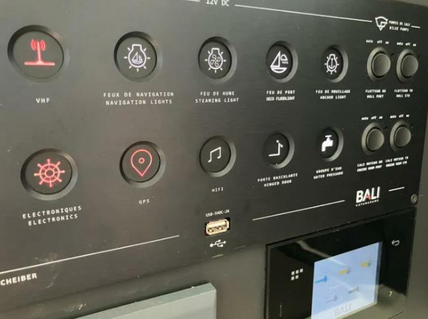 The electrical and comfort systems aboard Nauti Habit reflect a serious investment in self-sufficiency. The Cummins 9 KW generator -- one of the most reliable units in its class -- is fitted with a sound shield for near-silent operation, making it practical to run at anchor without disturbing the peace. The Victron Cerbo GX battery monitor provides full system visibility and supports remote monitoring via the VictronConnect app.