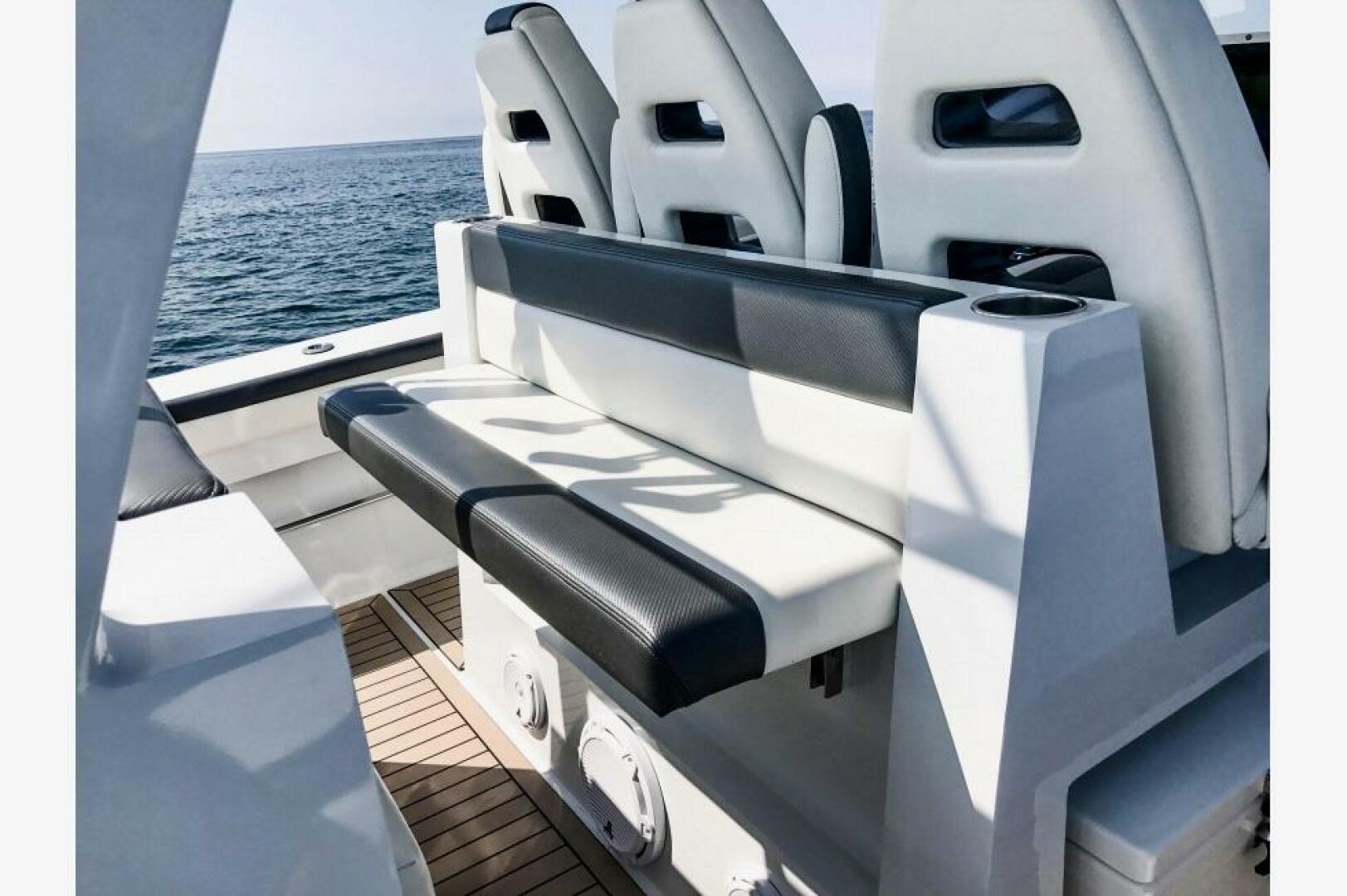 - Twin 50 qt coolers under helm seating