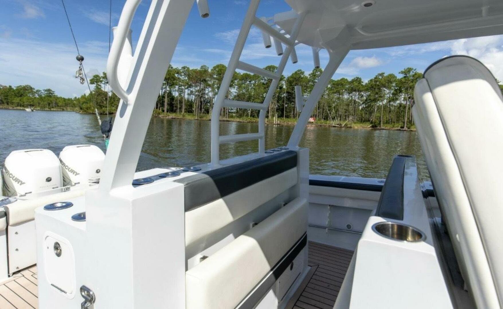 Powered with Quad 350hp Mercury Verados she’s NO slow responder!