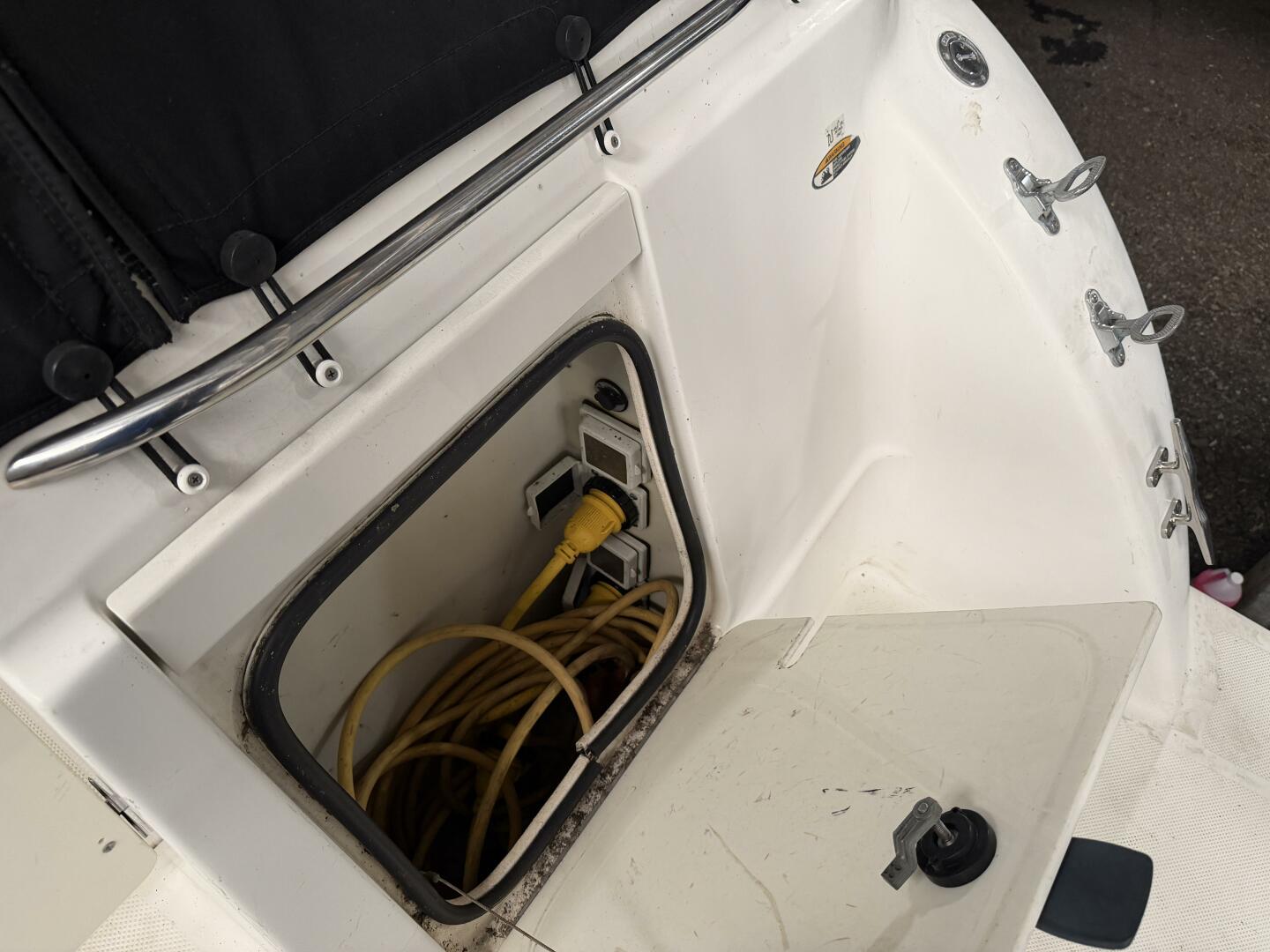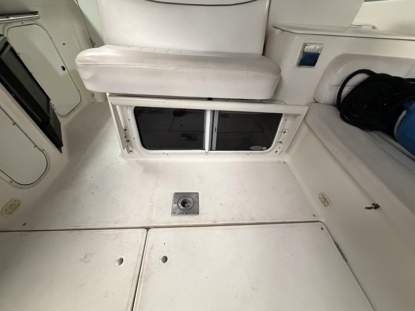 At the helm, you’ll find a Standard Horizon VHF radio, remote-controlled bow spotlight, and a cockpit-operated windlass with Fortress anchor, 20’ of chain, and 200’ of rode—making anchoring simple and safe. The boat also includes all lines, fenders, safety equipment, and even 10 life jackets, making it truly turnkey.