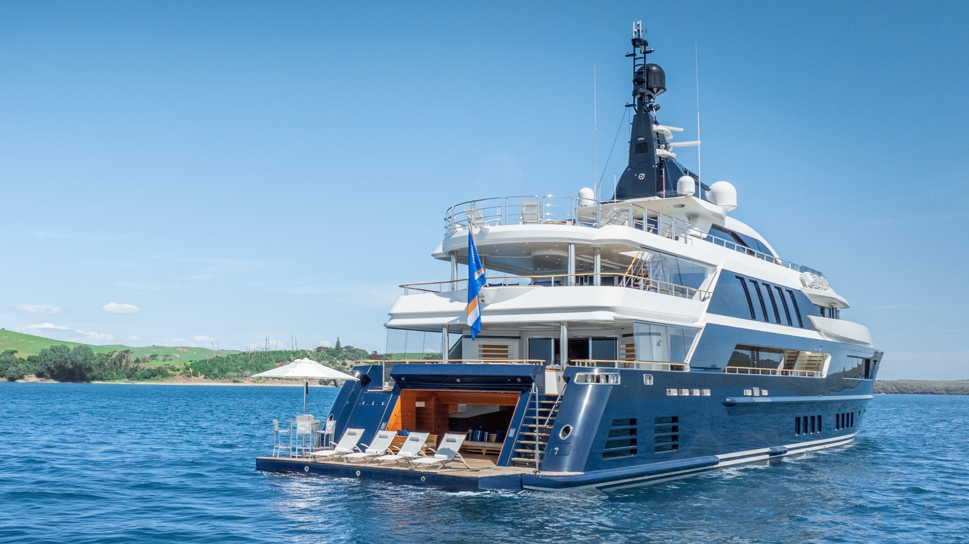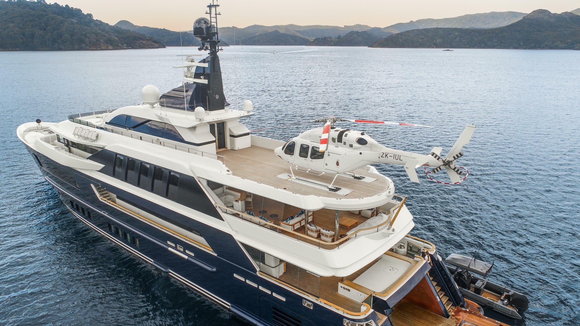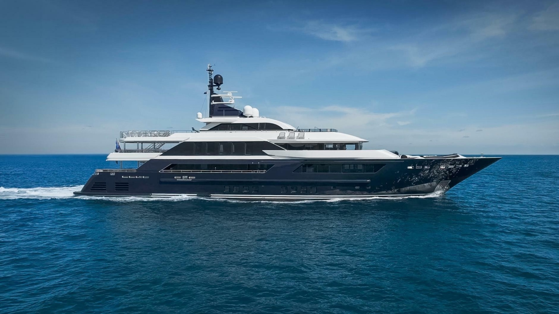 Key features include a generous beach club with a “drive-in” tender garage, a touch-and-go helipad suitable for a Bell 429 or similar, an elevator serving every deck, and zero-speed stabilizers for comfort at anchor. Attractively priced with a proven track record, she unites smart engineering with Italian elegance.
