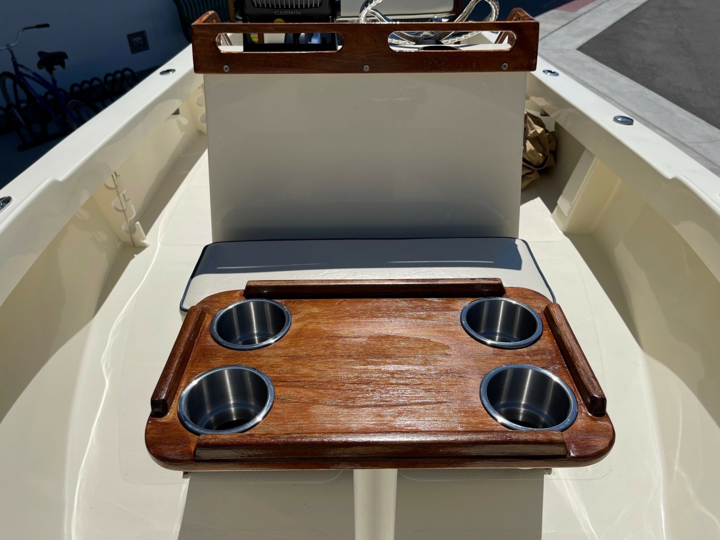 - Varnished teak handrail