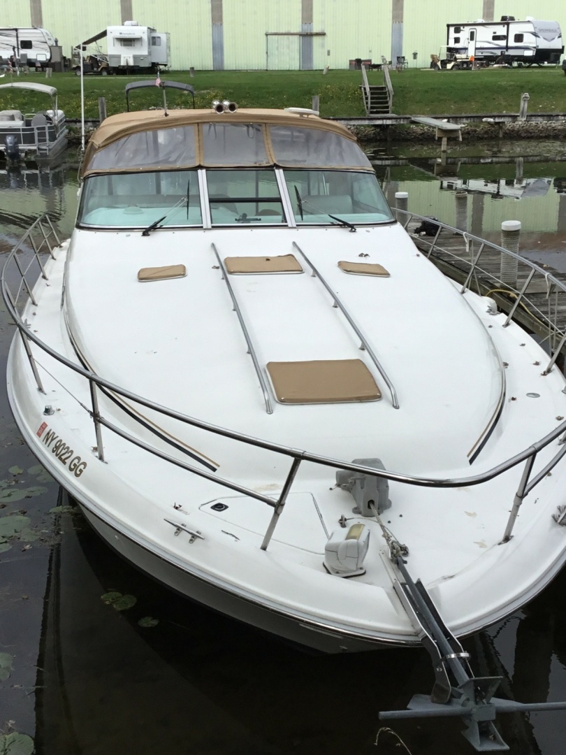 Clean 1995 Sea Ray Sundancer 370 with updated interior—new carpet and recovered couch (2020). Fusion stereo with JL speakers, Garmin GPSMAP942, full camper canvas, and strong maintenance history. No generator. Turnkey and well cared for with safety gear included. Stored Inside.