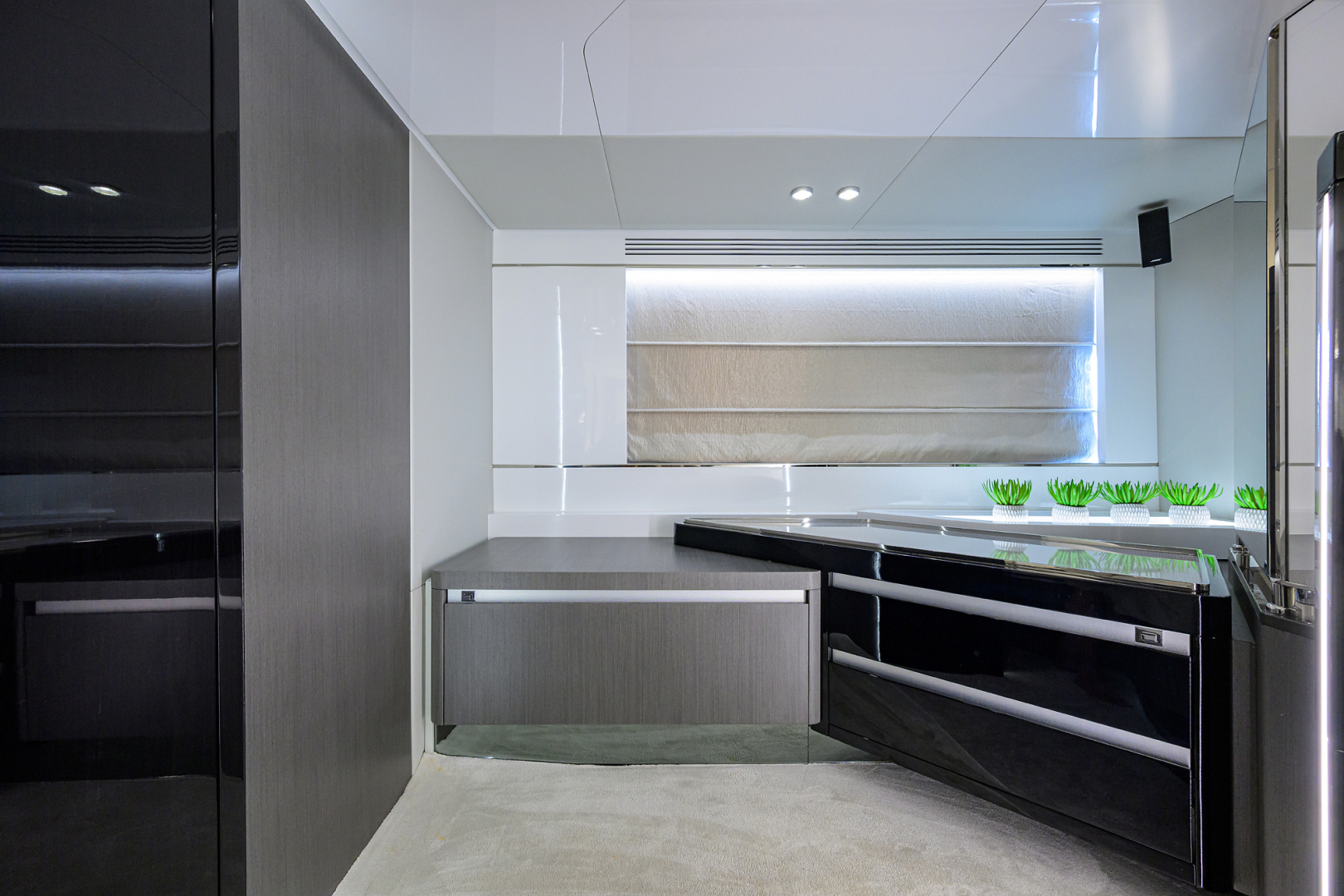 Onboard, the Raymarine Platinum Package offers state-of-the-art navigation and control systems, while the Lighting Lux Package in the salon and VIP stateroom enhances the ambiance with refined, modern sophistication. Every detail of this yacht has been thoughtfully designed to blend luxury, comfort, and cutting-edge technology.