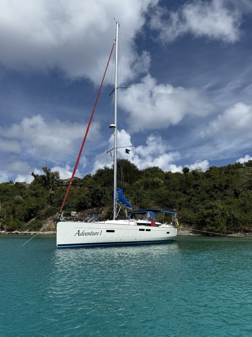 2016 Jeanneau Sun Odyssey 479 “Adventure 1”. Major upgrades include Victron lithium, 1300W bifacial solar on custom arch, bow thruster, watermaker, new sails/rigging, Gori folding prop, new Raymarine electronics, AC, and new dinghy. Summer storage PAID at Nanny Cay Marina.