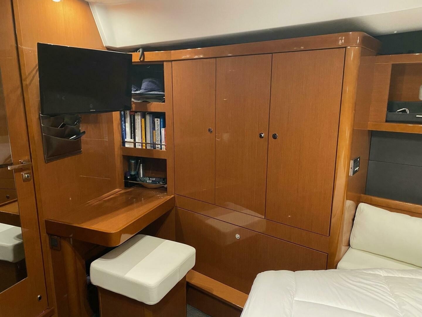 Blue Pearl is very well equipped with all the amenities you could want. Lightly used and enjoyed by her original owner…. And never chartered. She has 3 staterooms, 3 heads and the optional crew cabin with head that is accessed from the foredeck. Beautiful interior Alpi Mahogany joinery, upgraded leather salon cushions and cabin top lounge cushions, tremendous headroom throughout, 5 A/C units to keep you extremely comfortable, dishwasher, combo washer/dryer, TV’s in each stateroom and salon, all electric heads… What’s not to love!
