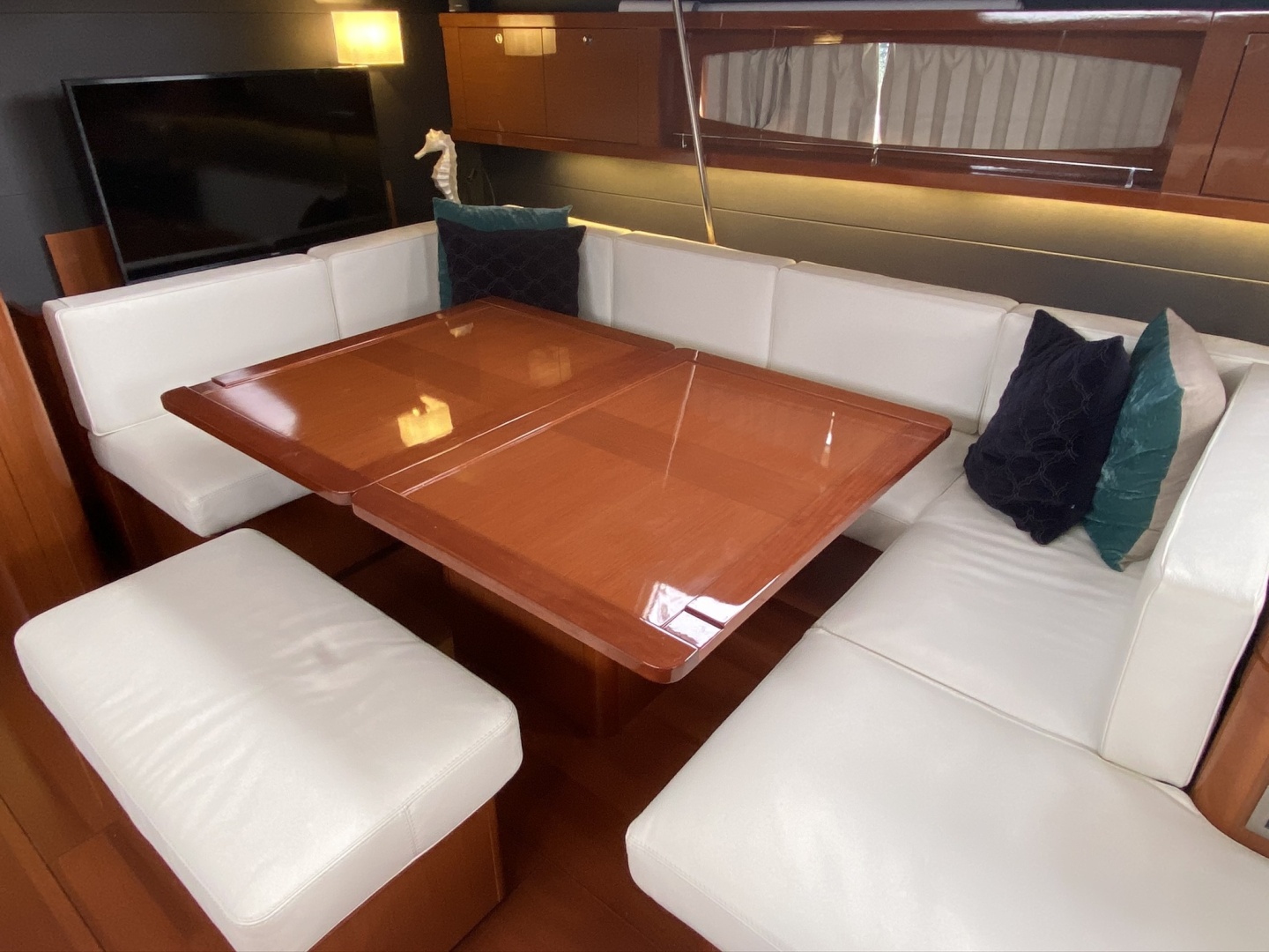 - Upgraded leather salon cushions and cabin top lounge cushions