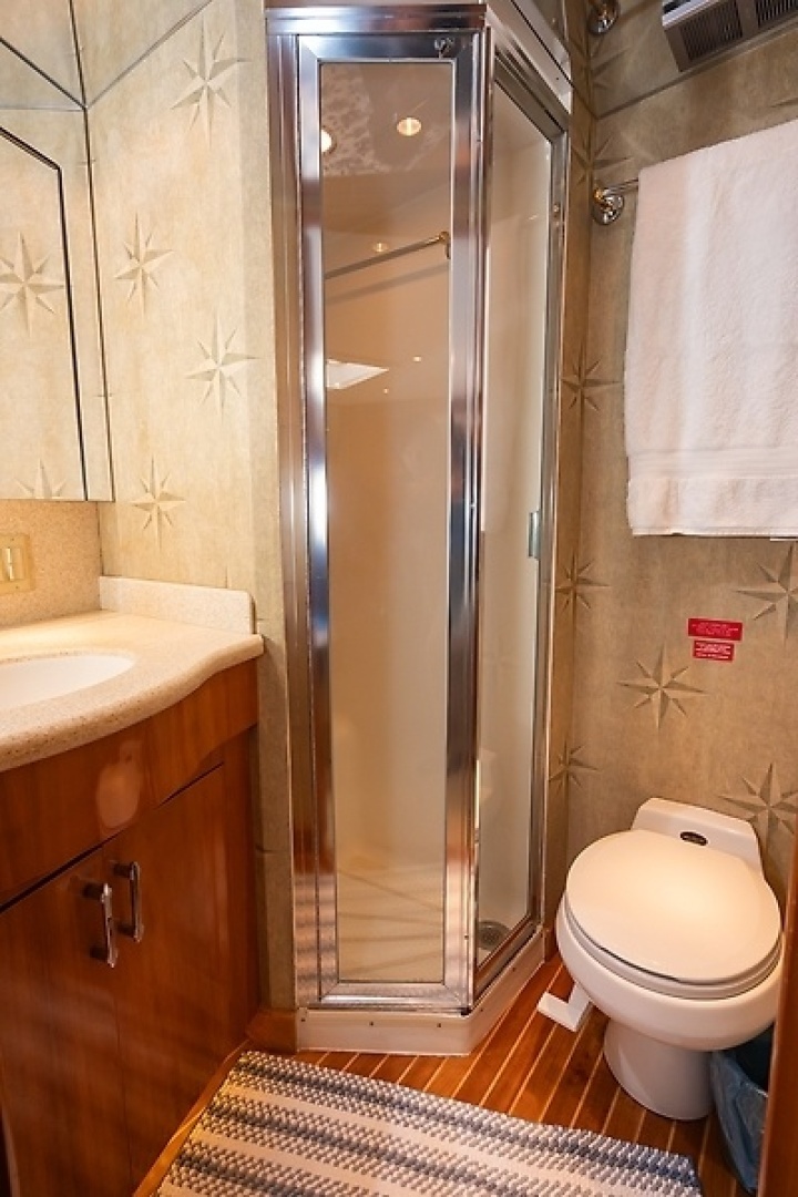 - Three stateroom, Three head and shower layout with a Huge Master cabin, VIP cabin with a Queen berth, and a Guest Cabin with upper and lower bunks