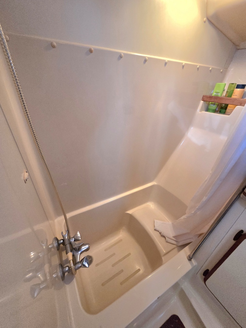 - Hot/cold cockpit shower (starboard of swim platform)