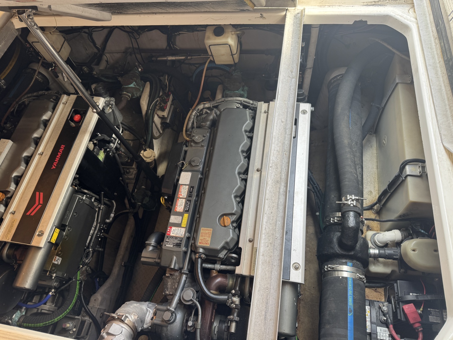 in 2021 She was re-powered w/ a pair of 2016 Yanmar 440's. Engines Show 1620 hours however they were Completely gone through, Dyno'd and re-sold by a highly regarded National Yanmar Dealer. . Engines only show 50 hours since replacement. Original CAT Diesels had 750 hours when the engines were replaced. She has only been run 50 hours since the engine replacement. New Shafts, ceramic (Shur Shaft) seals, Fresh water washdown on Engines, & Electronic Shifters were all updated/replaced at time of Re-Power. includes, new oil change system, fuel Selector switch, new Racor fuel filter system, & New Exhaust system. ZF Transmissions were also removed and gone through by a ZF Transmission. Both Fuel Tanks were inspected and the Starboard Fuel Tank Was replaced at this time. Westerbeke Generator was also removed and completely gone through and new Motor Mounts installed.