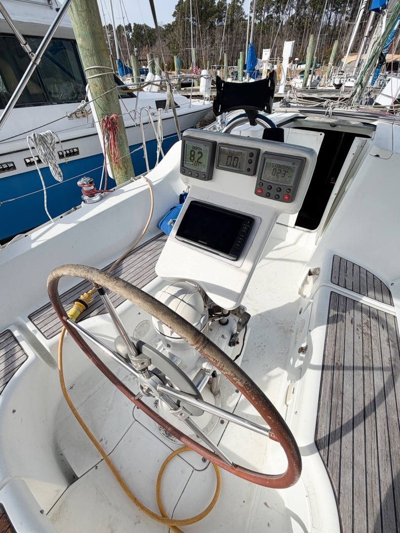 The cockpit is spacious and secure, perfect for entertaining or relaxing underway.