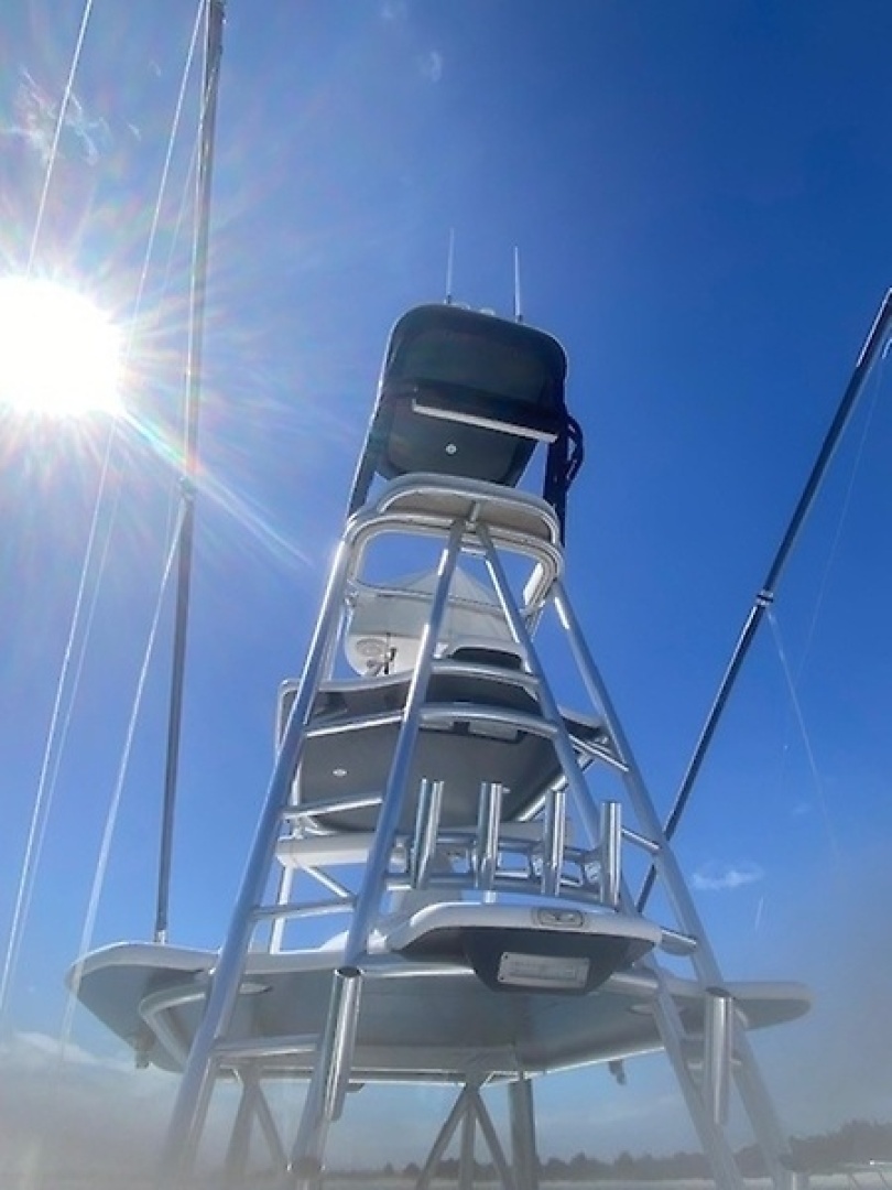 - Rod holders (4) polished welded inner aft tower leg