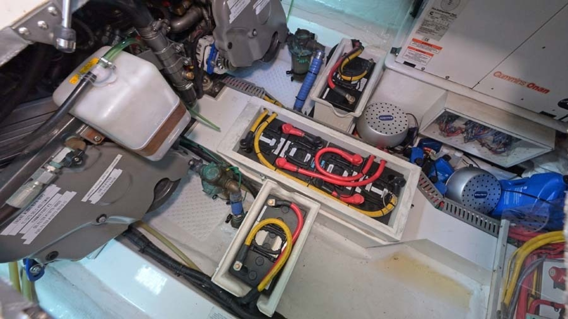 - 2x isolated battery banks, one for main engines and generator, one for house loads