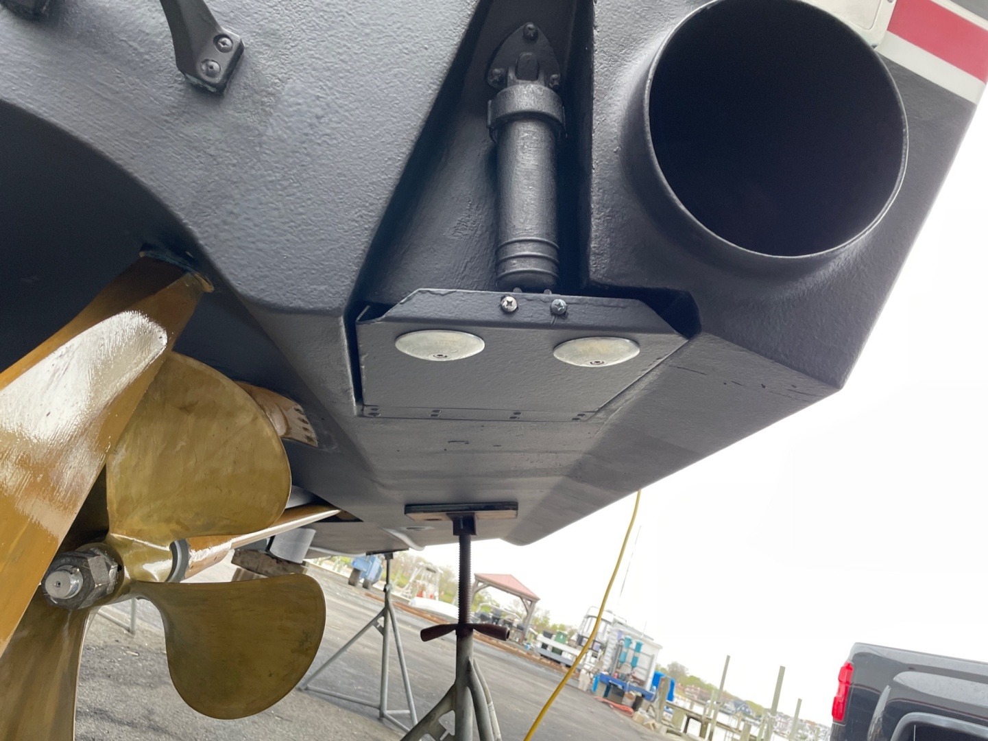 - Recessed custom stainless steel anchor roller assembly