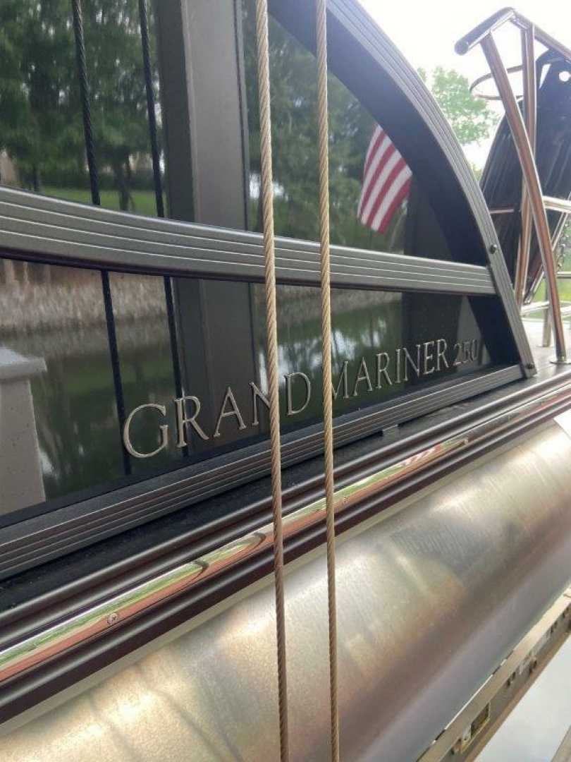 This is an AS NEW Grand Mariner 250 with only 15 hours on the new Mercury 400hp V-10. It is equipped with Black Powder Coated Rails; Stainless Steel Rubrail; Single Rear Lounger with Dual Highback Helm Seats; Chestnut Brown Pillowtop Upholstery with Onyx Accents; Cloud Bamboo Flooring; Performance Level 3.5 with Ski Tow Bar and 63 gallon Fuel Tank; Ultra Manual Tower with Double Bimini Top' "C-Zone" Total Lighting Package; Convenience Package with 2 Additional Fenders; Stainless Steel 4 Step Swim Ladder; SS Aft Swim Step/Seat; Dual Simrad GO9 Screens with Vessel View; Raised Helm; Removable Windscreen; JL Platinum Sound System Upgrade; On Board Battery Maintainer; Aft Safety Railing; Chaise End Flip Up Table; Bow Black Acrylic Table. SHOWN BY APPOINTMENT ONLY-STORED OFF SITE AT SELLERS HOME!!